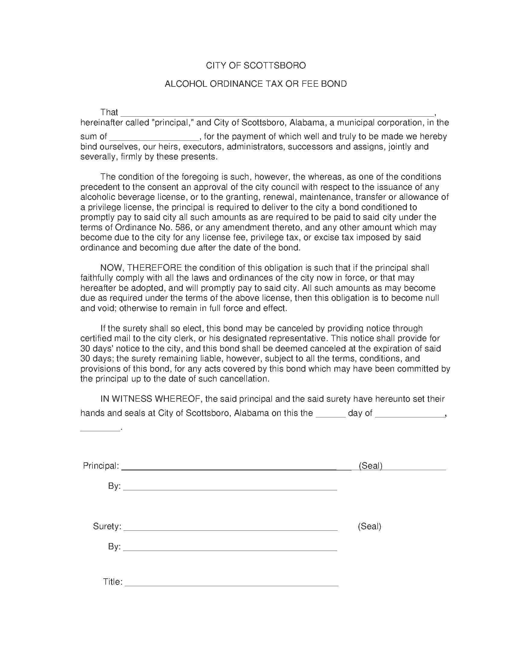 City of Scottsboro Alcohol Ordinance Tax or Fee Bond