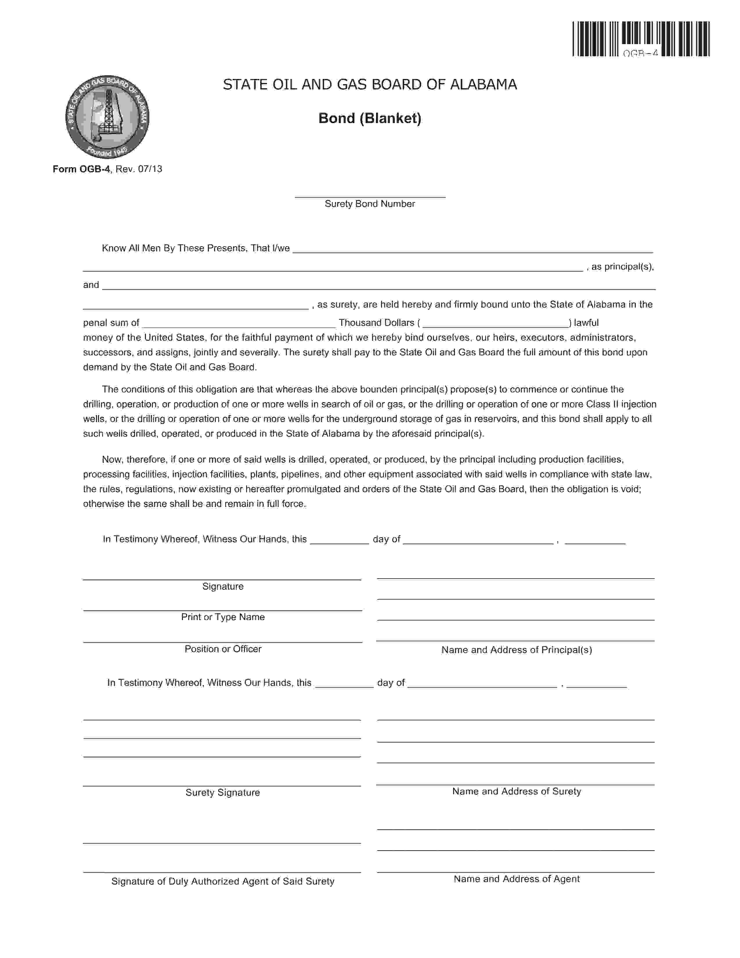 Alabama State Oil and Gas Board Oil & Gas: Blanket Bond