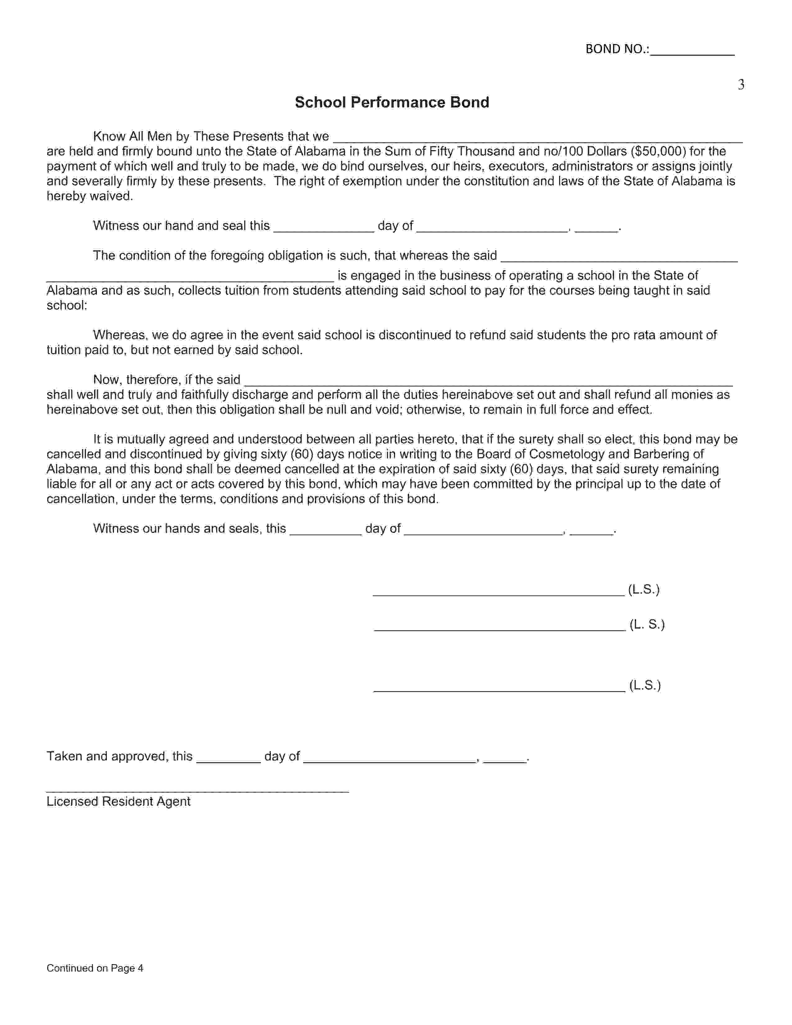 State of Alabama Board of Cosmetology and Barbering School Performance (Cosmetology) Bond
