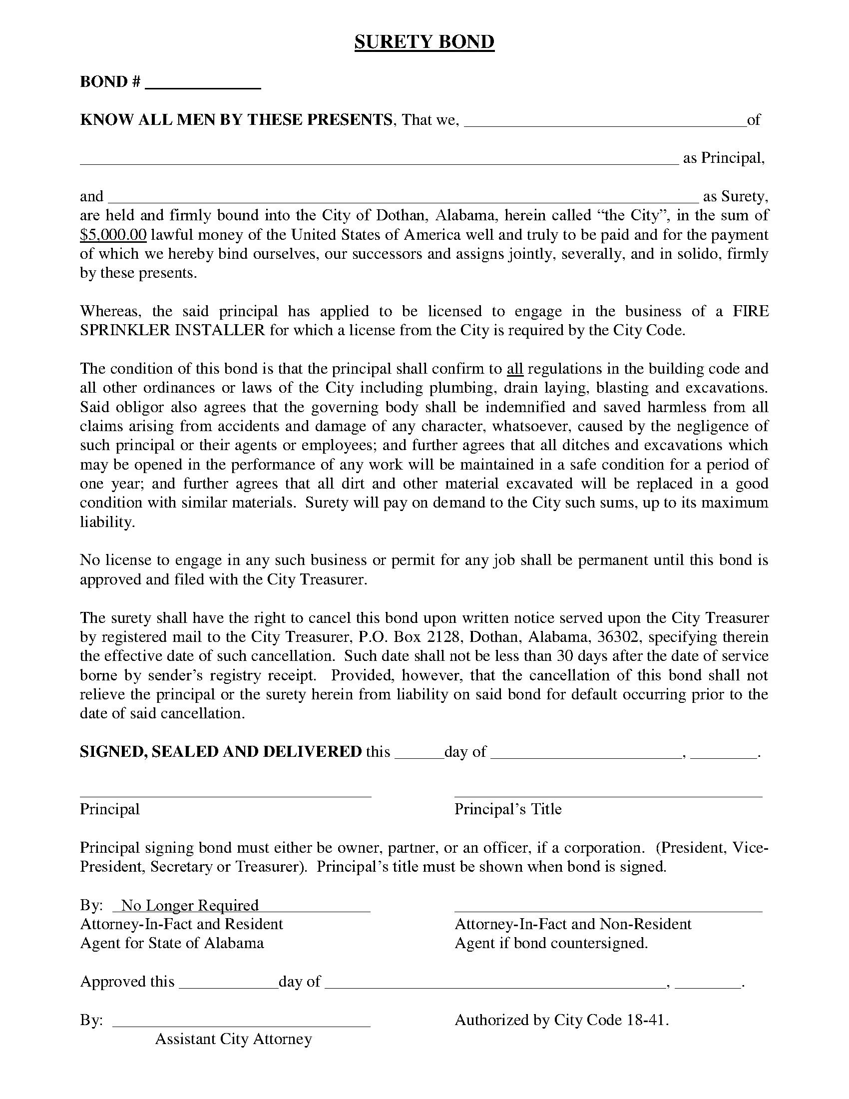 City of Dothan Fire Sprinkler Installer Bond
