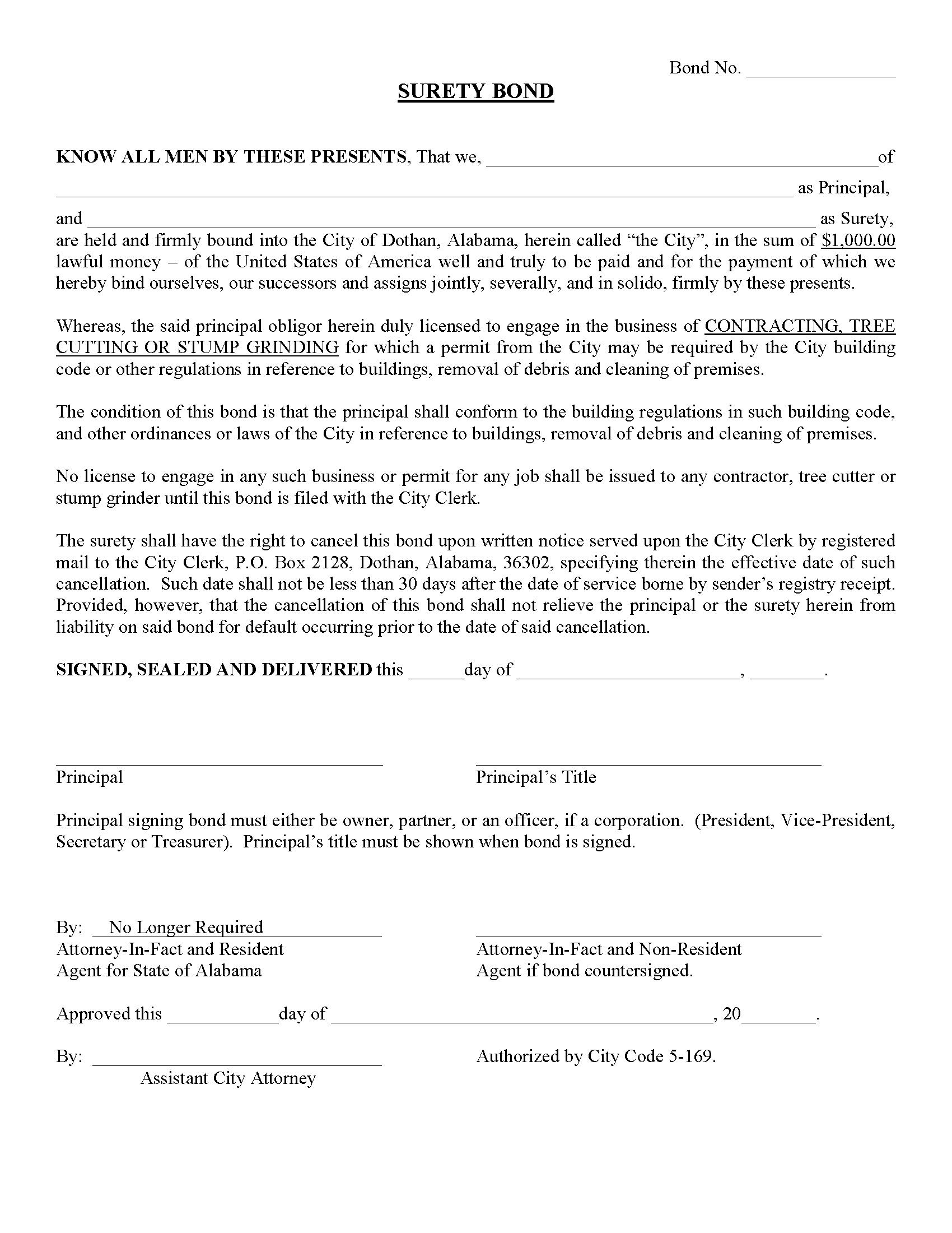 City of Dothan Tree Cutting or Stump Grinding Bond