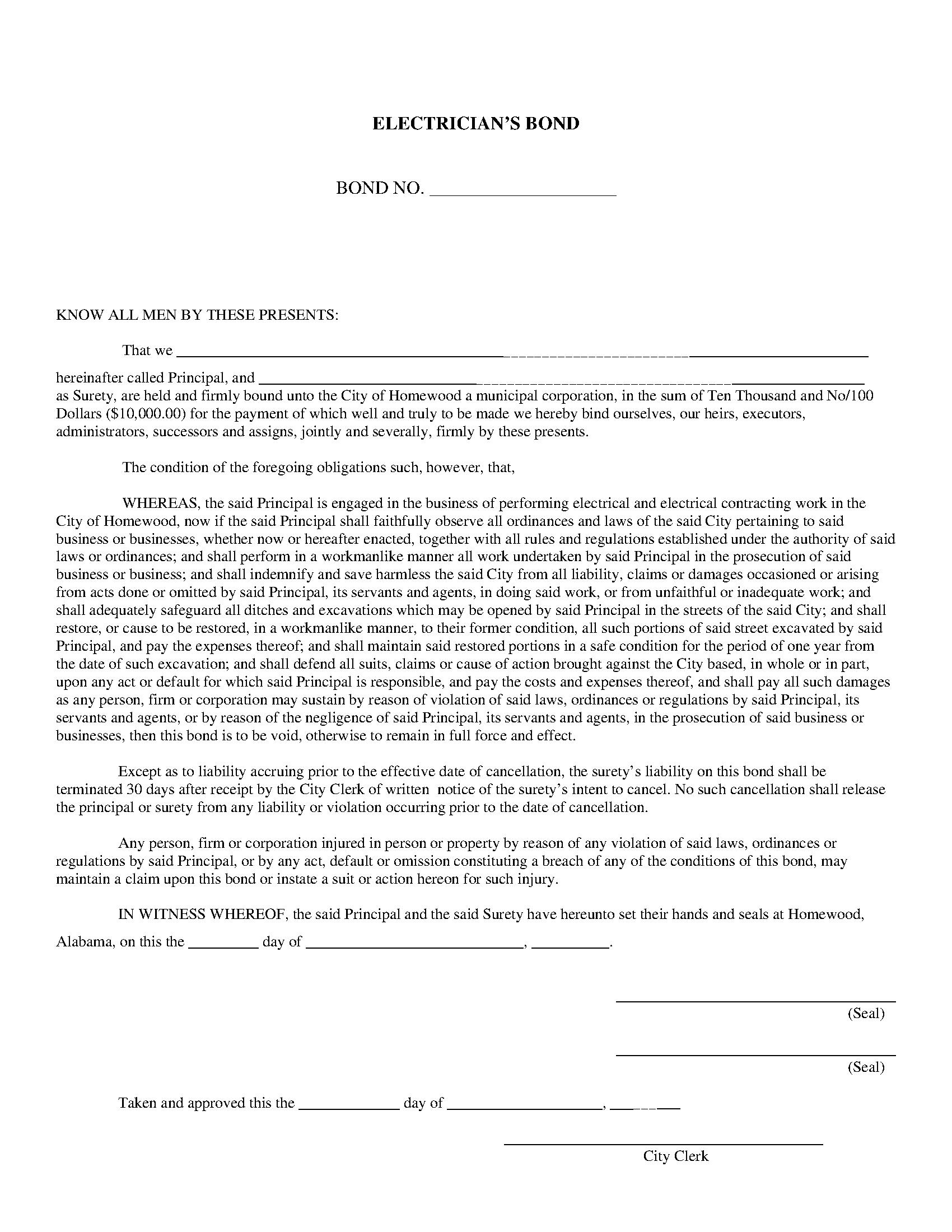 City of Homewood Contractor License Bond