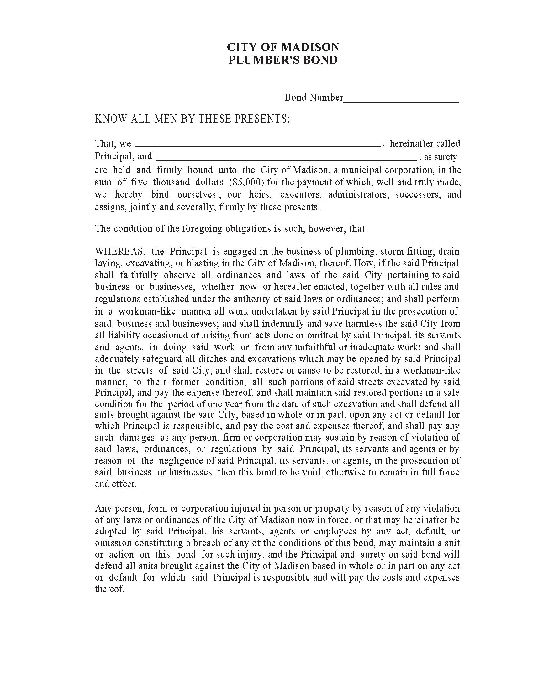 City of Madison Plumbers/Plumbing Bond