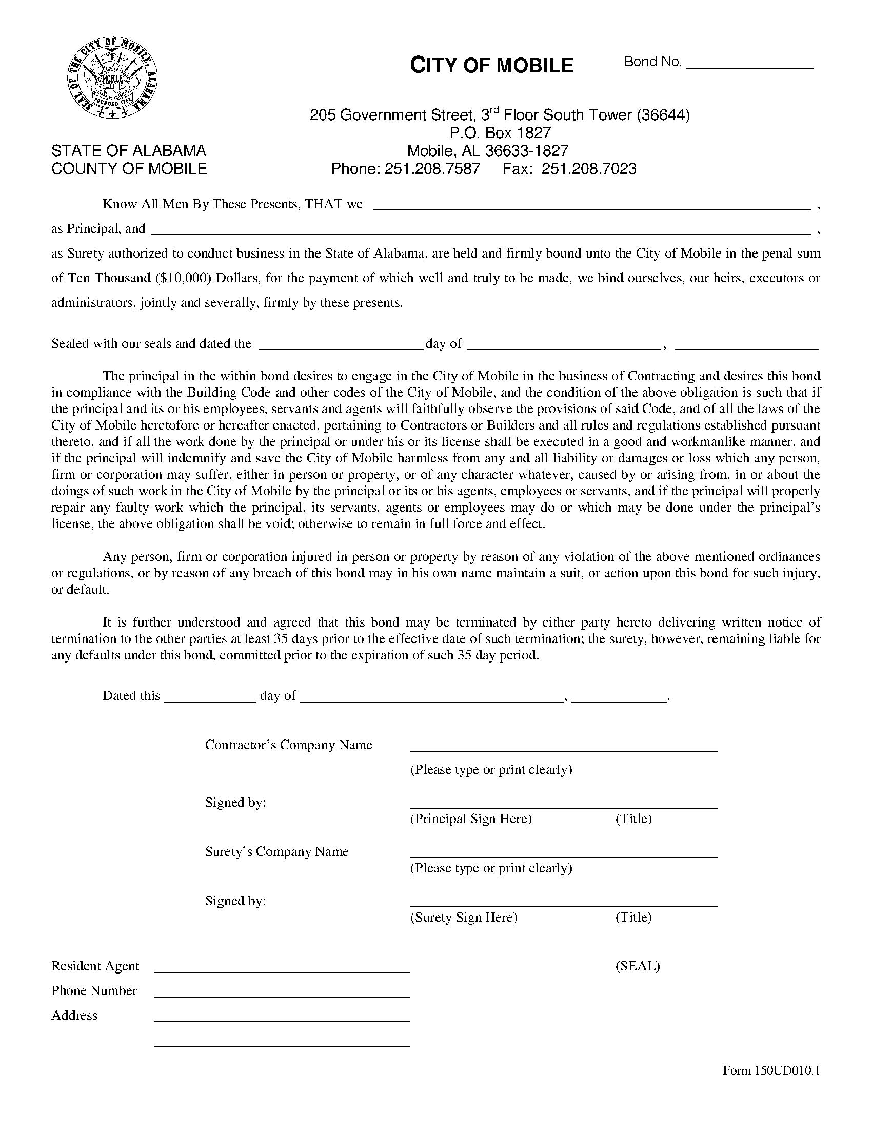 Contractors who want to operate in Mobile, Alabama, must get a surety bond as part of their City of Mobile business license application.