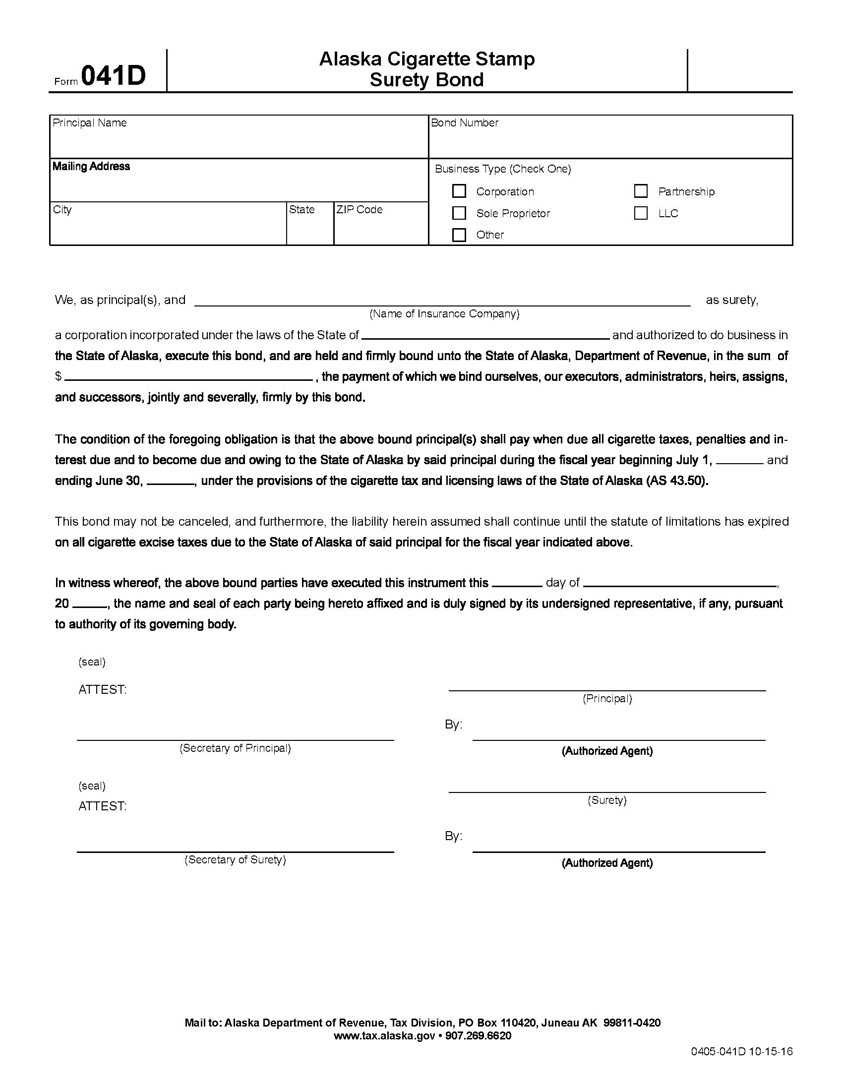 State of Alaska Cigarette Stamp Bond