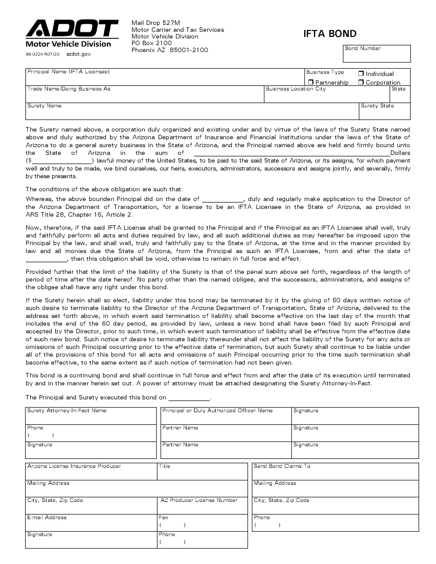 The Arizona IFTA Tax Bond starts at $100 plus shipping costs and fees. Fill out the form to buy your bond instantly!