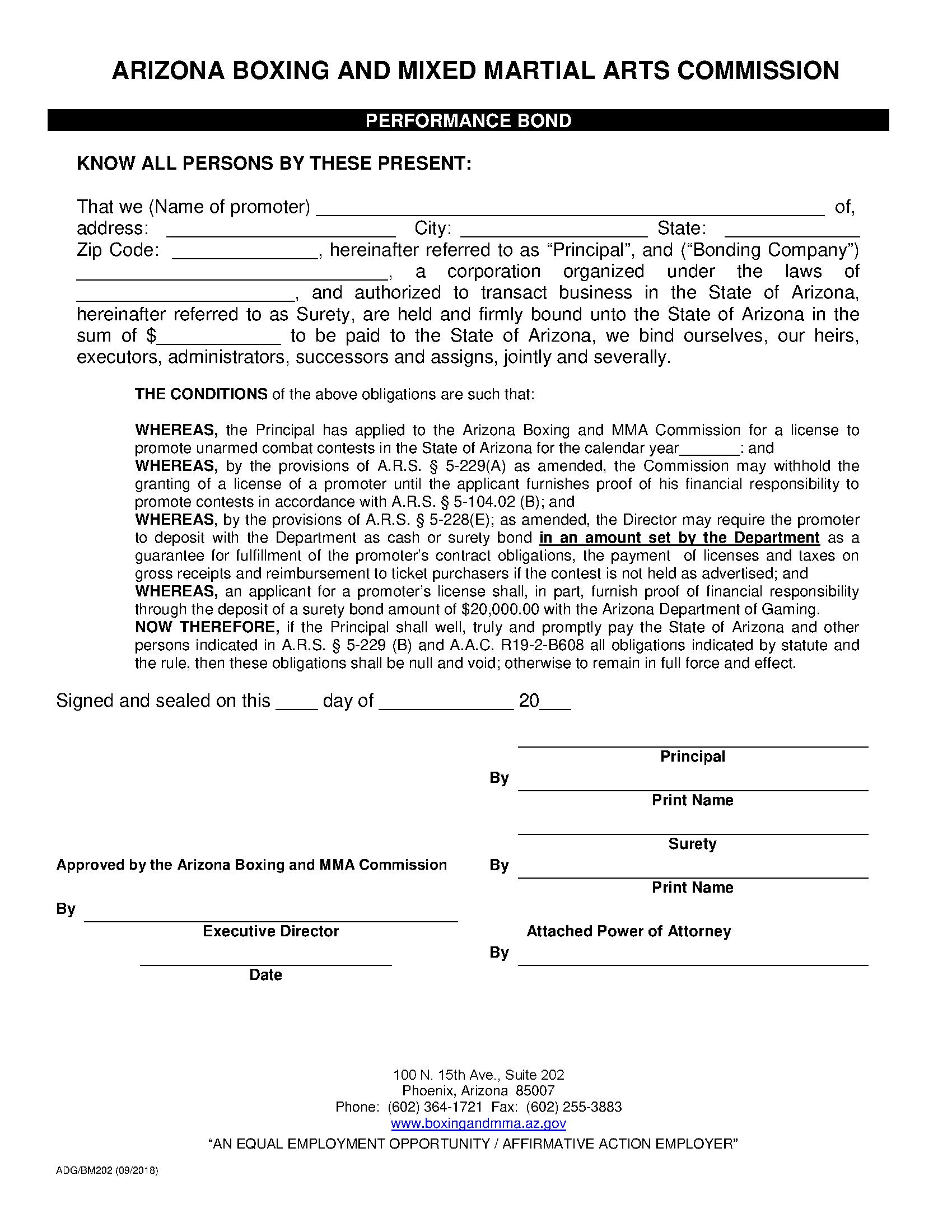 State of Arizona Boxing and Mixed Martial Arts Promoter Bond