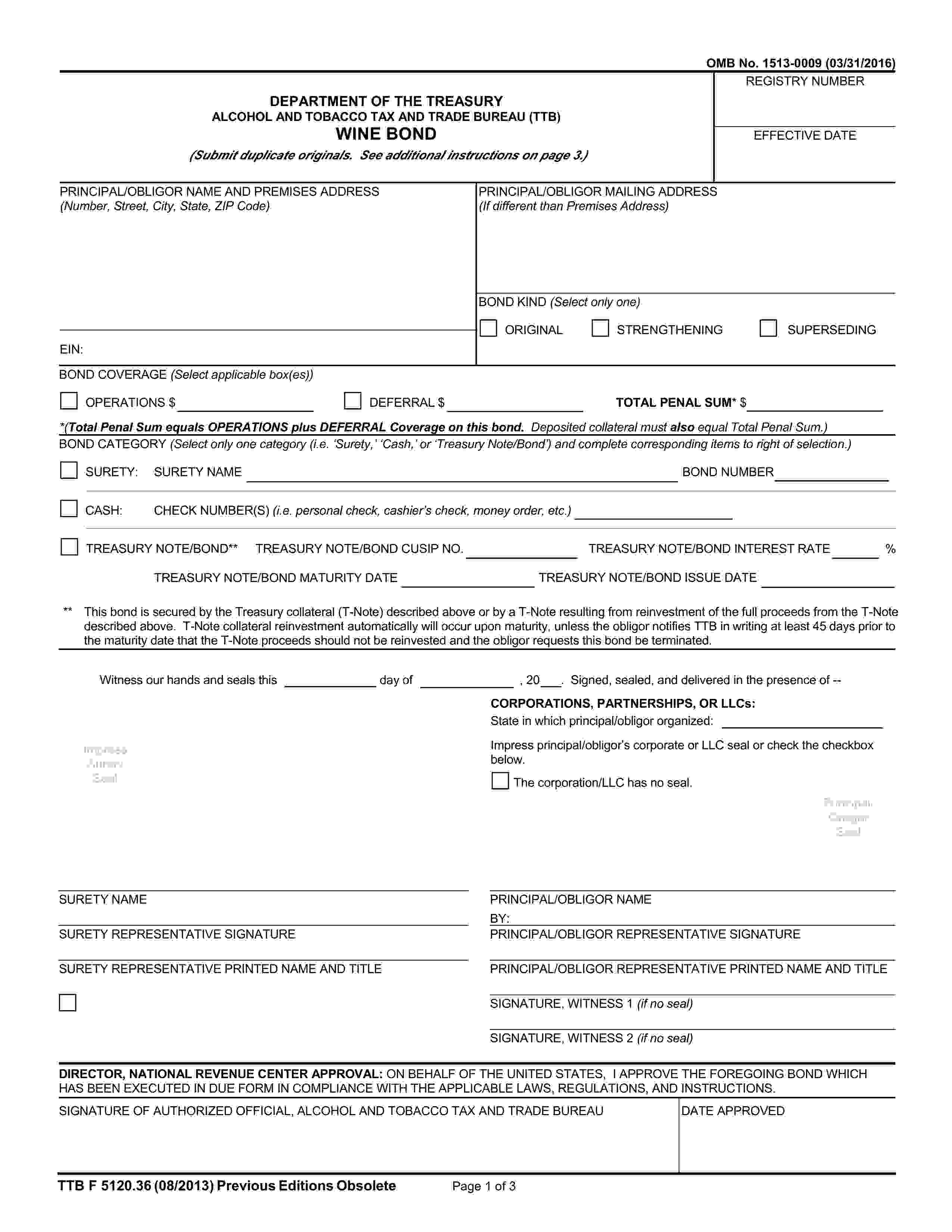 United States of America Federal TTB Wine Bond