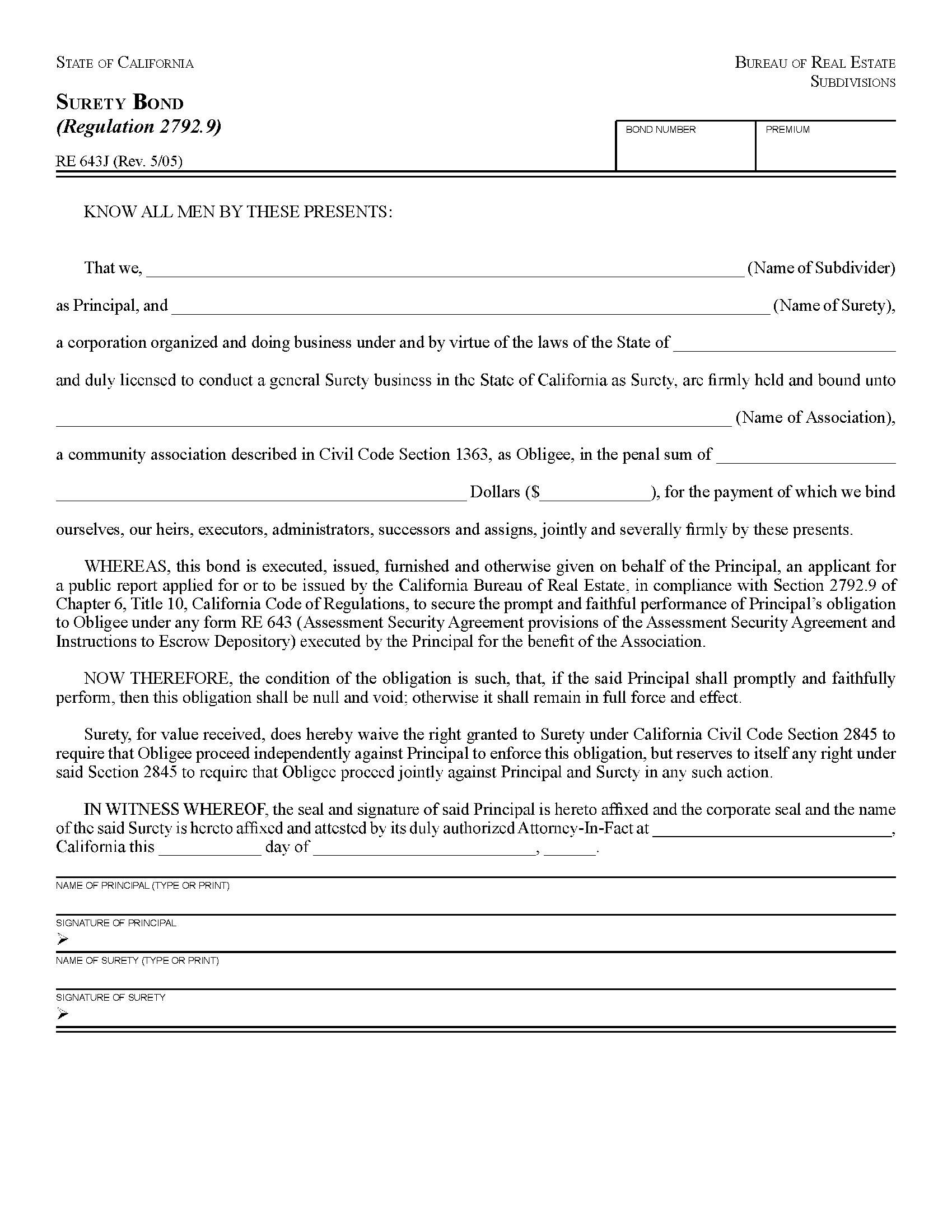 HOA Assessment Security Agreement (Regulation 2792.9) Bond