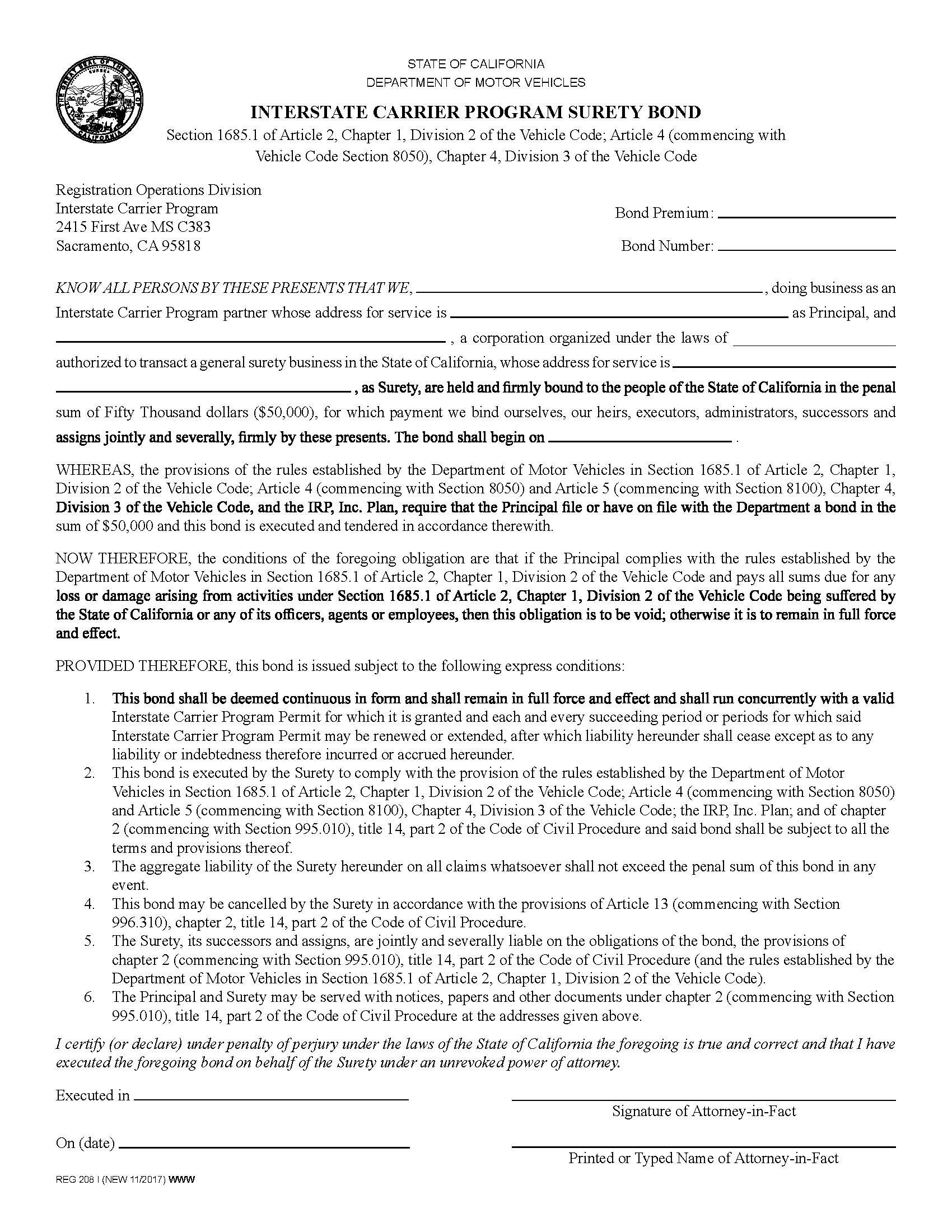 State of California Interstate Carrier Program Bond