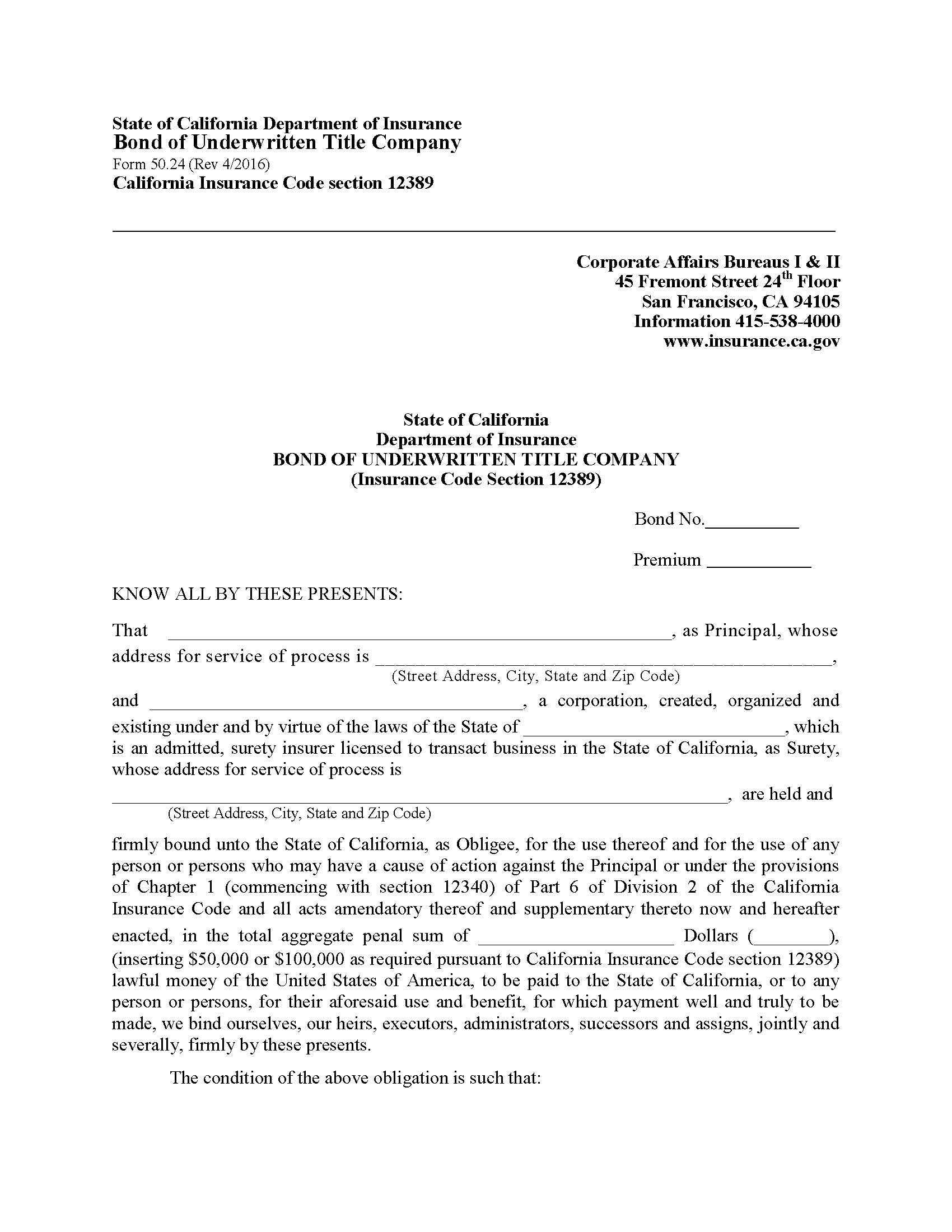 Corporate Affairs Bureaus I and II Underwritten Title Company Bond