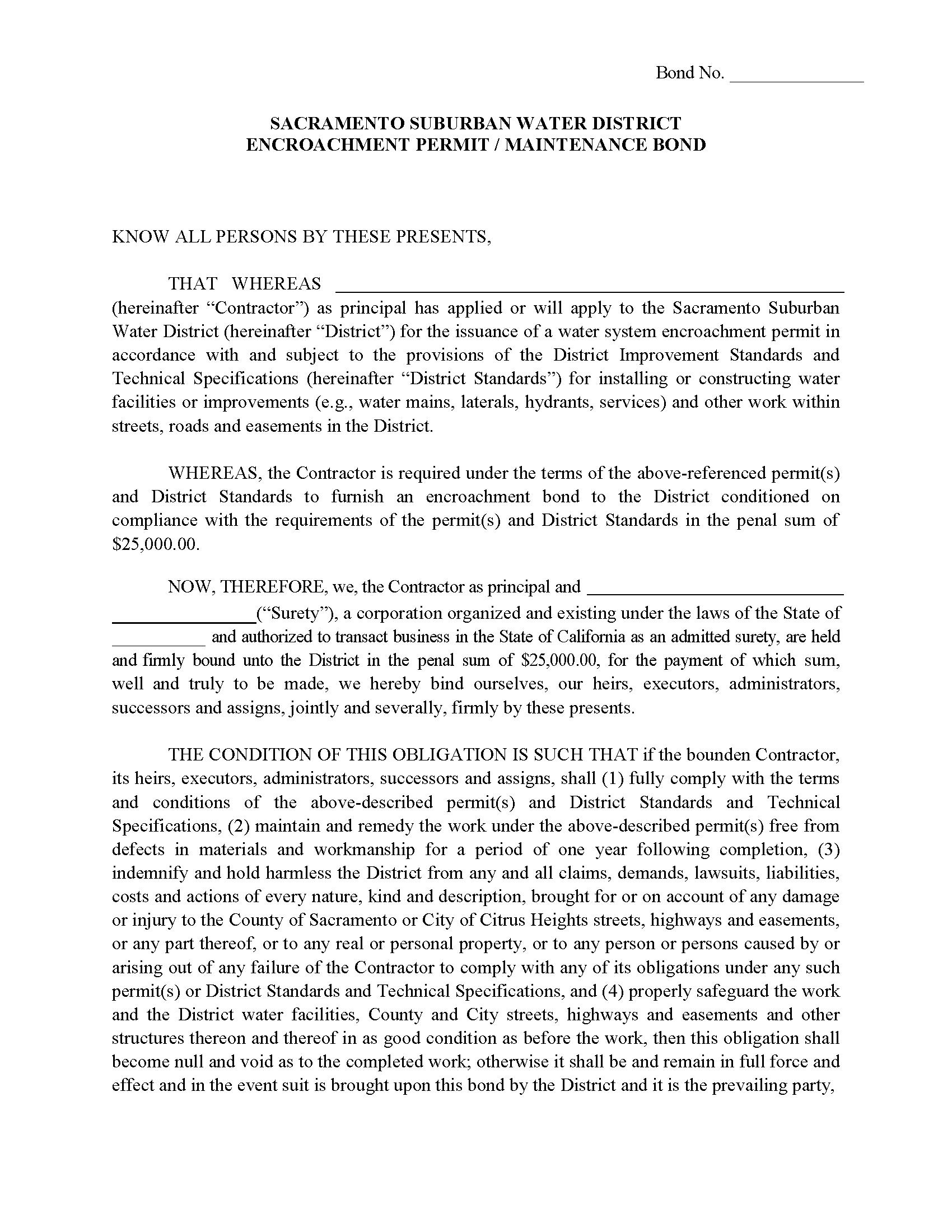 Sacramento Suburban Water District Sacramento Suburban Water District Encroachment Permit Bond