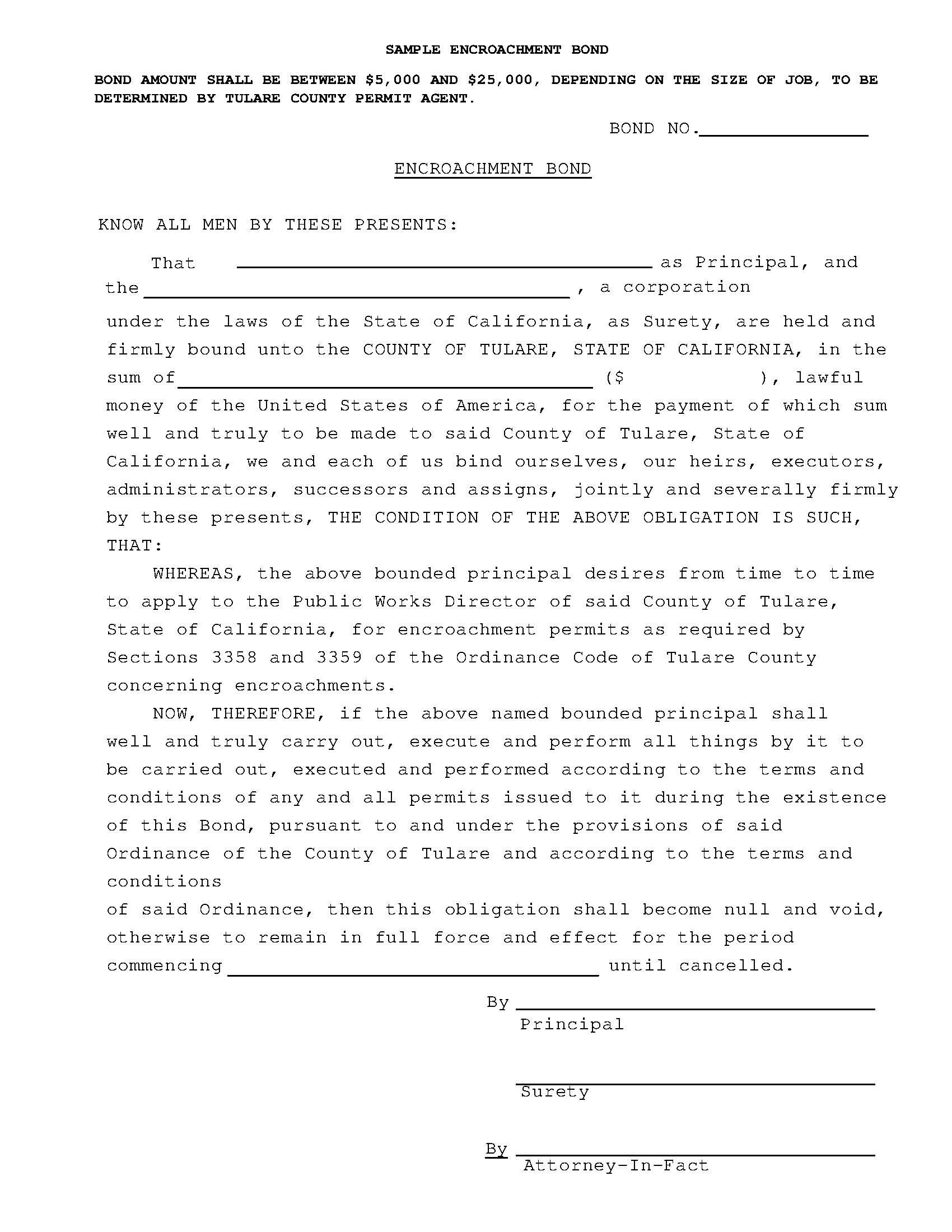 COUNTY OF TULARE, STATE OF CALIFORNIA County Encroachment Permit Bond