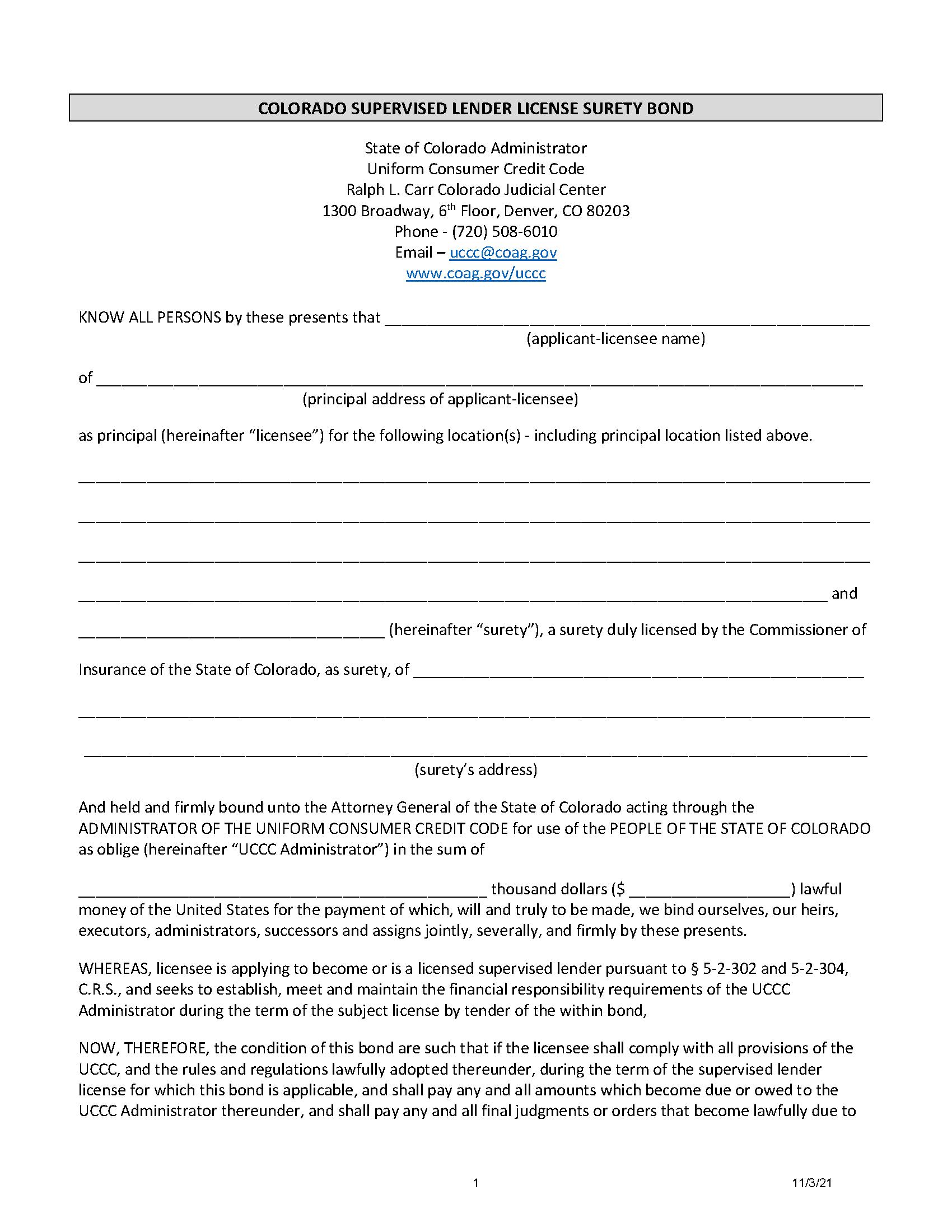State of Colorado Supervised Lender Bond