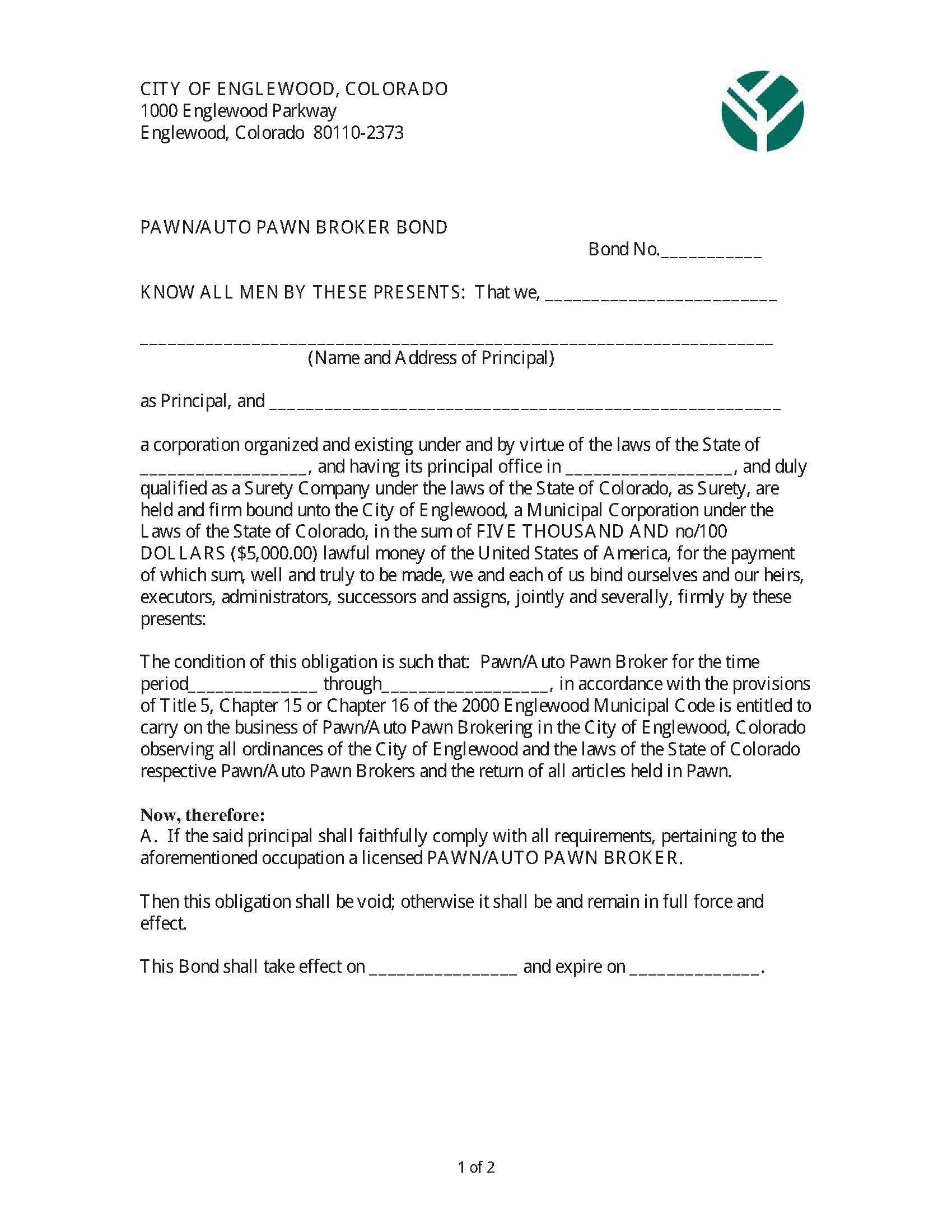 City of Englewood Pawn/Auto Pawn Broker Bond