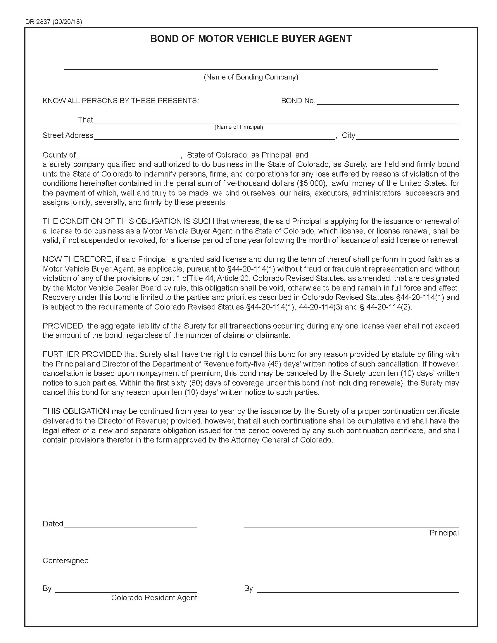 State of Colorado Motor Vehicle Buyer Agent Bond