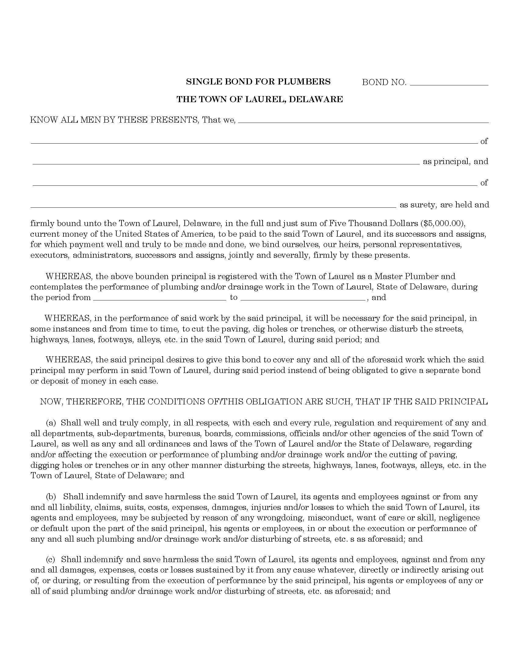 Town of Laurel Plumber Bond