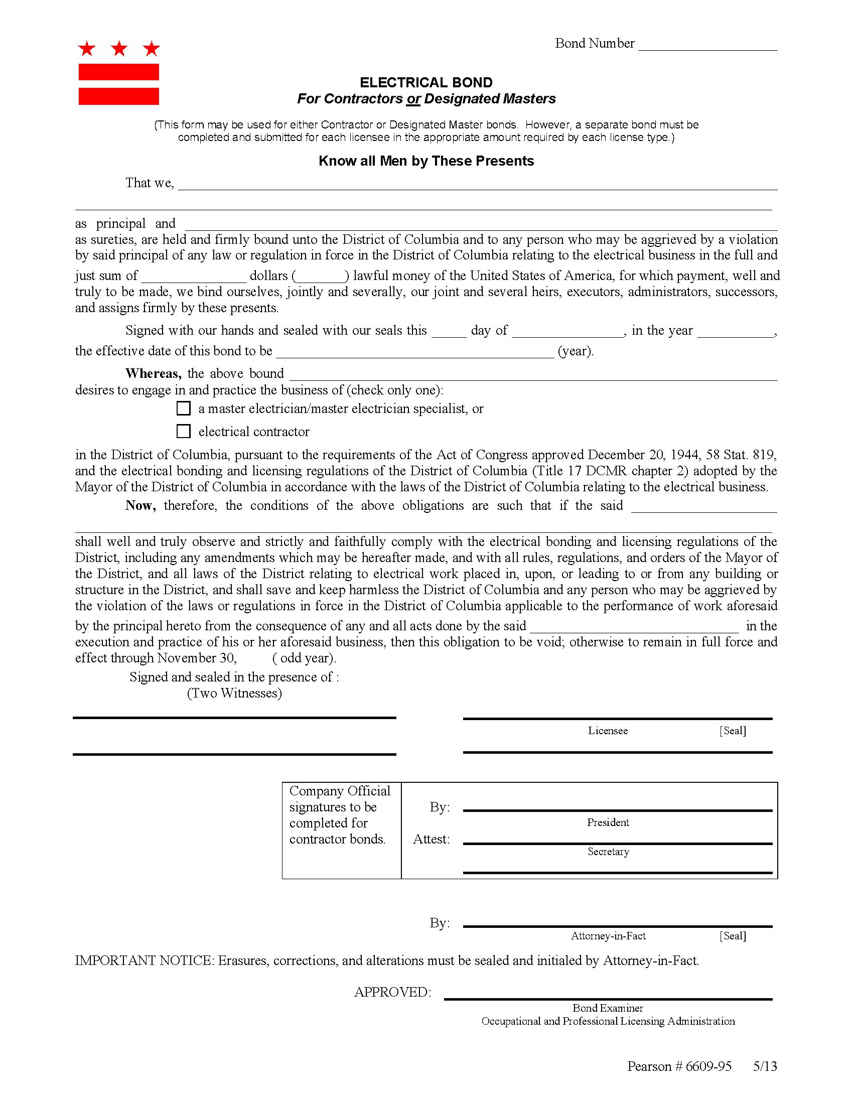 District of Columbia Electrical Contractor and Designated Master Bond