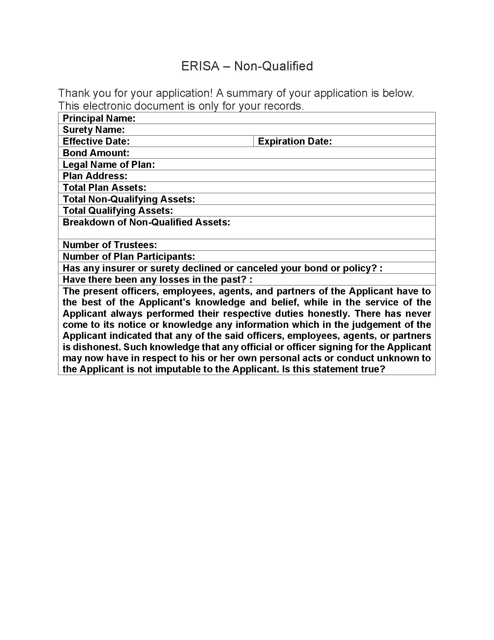 ERISA - Non Qualified (Assets Including Real Estate, Art, Jewelry and Collectables - UNCOMMON) Bond