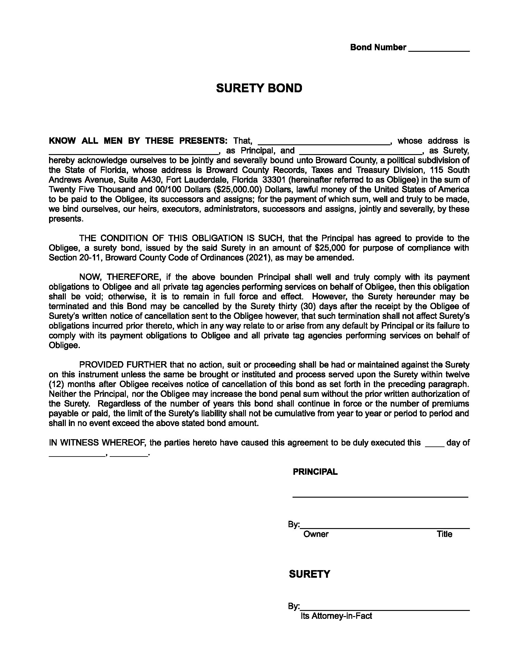 Broward County Private Courier Compliance Bond