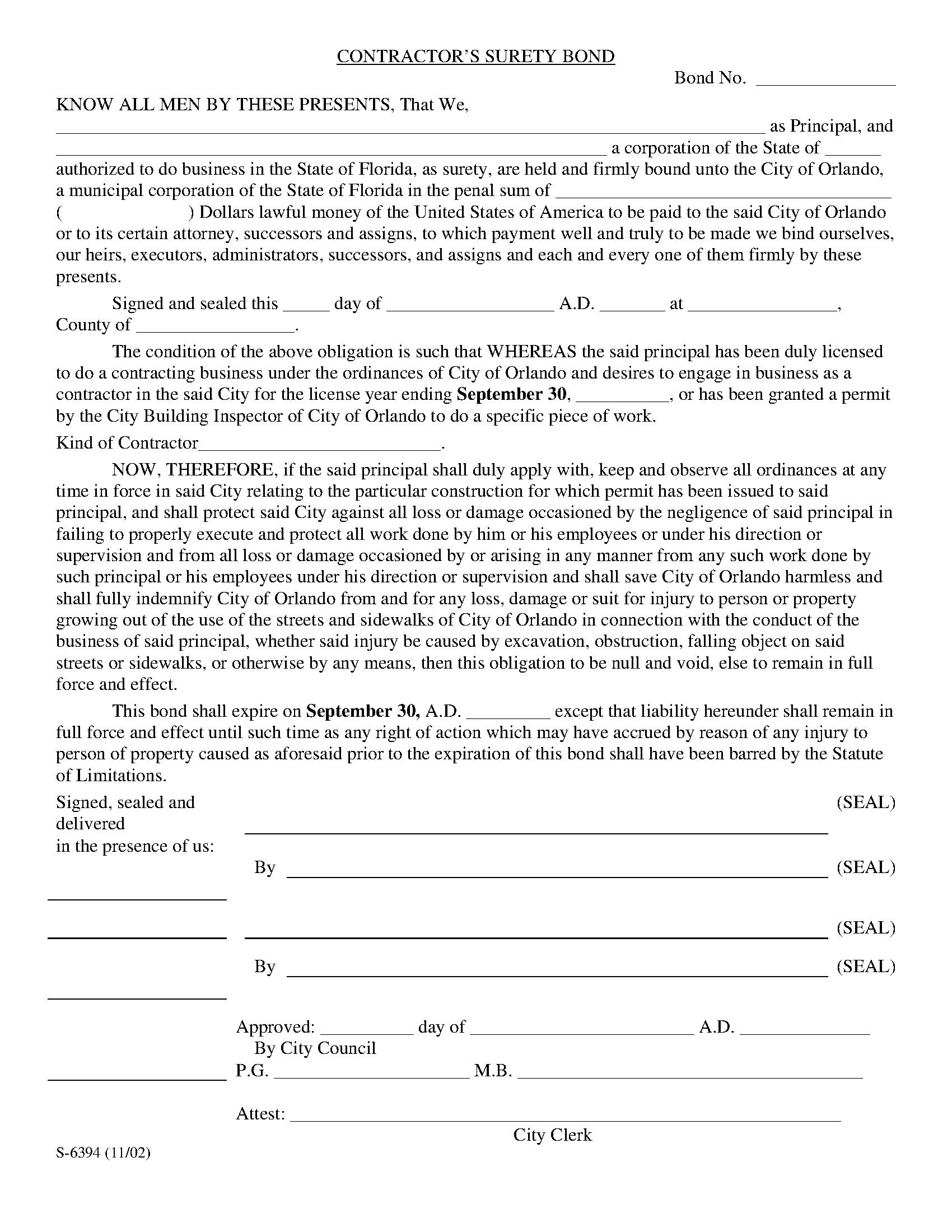 The Florida Orange County Contractor License/Permit Bond starts at $100 plus shipping costs and fees. Fill out the form to buy your bond instantly!