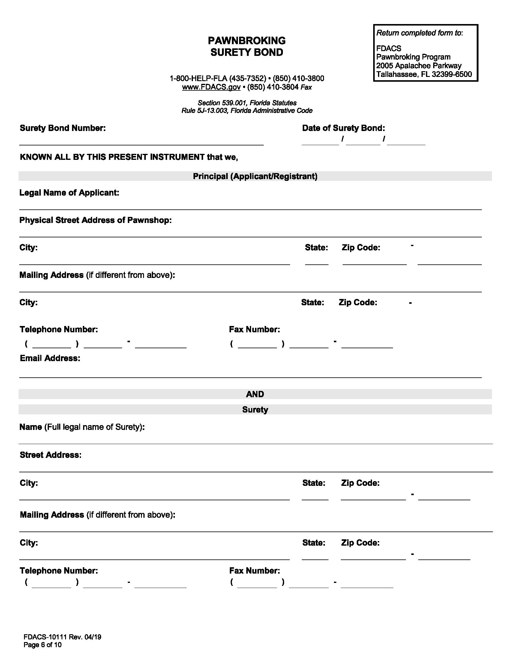 State of Florida Pawnbroker Bond