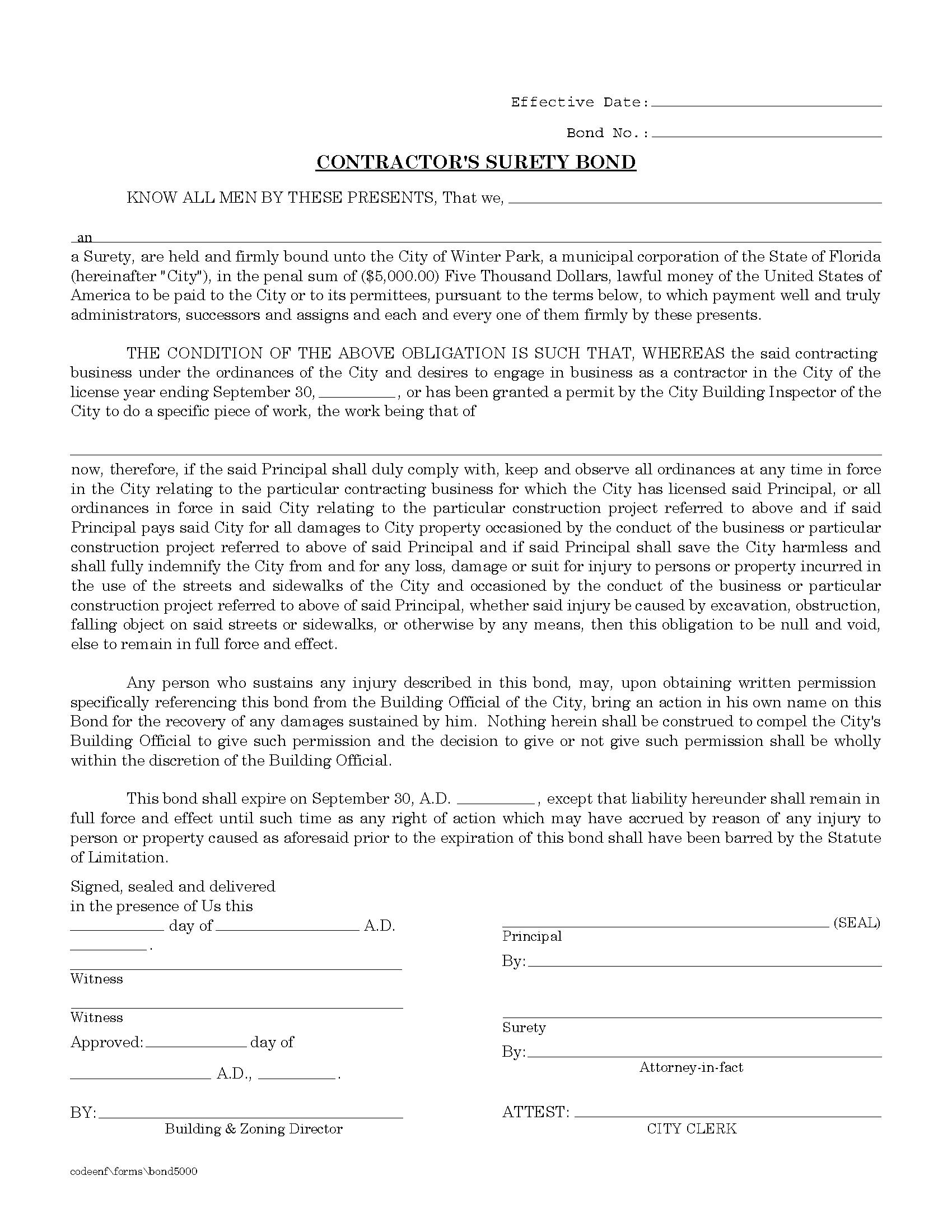City Of Winter Park License/Permit Bond