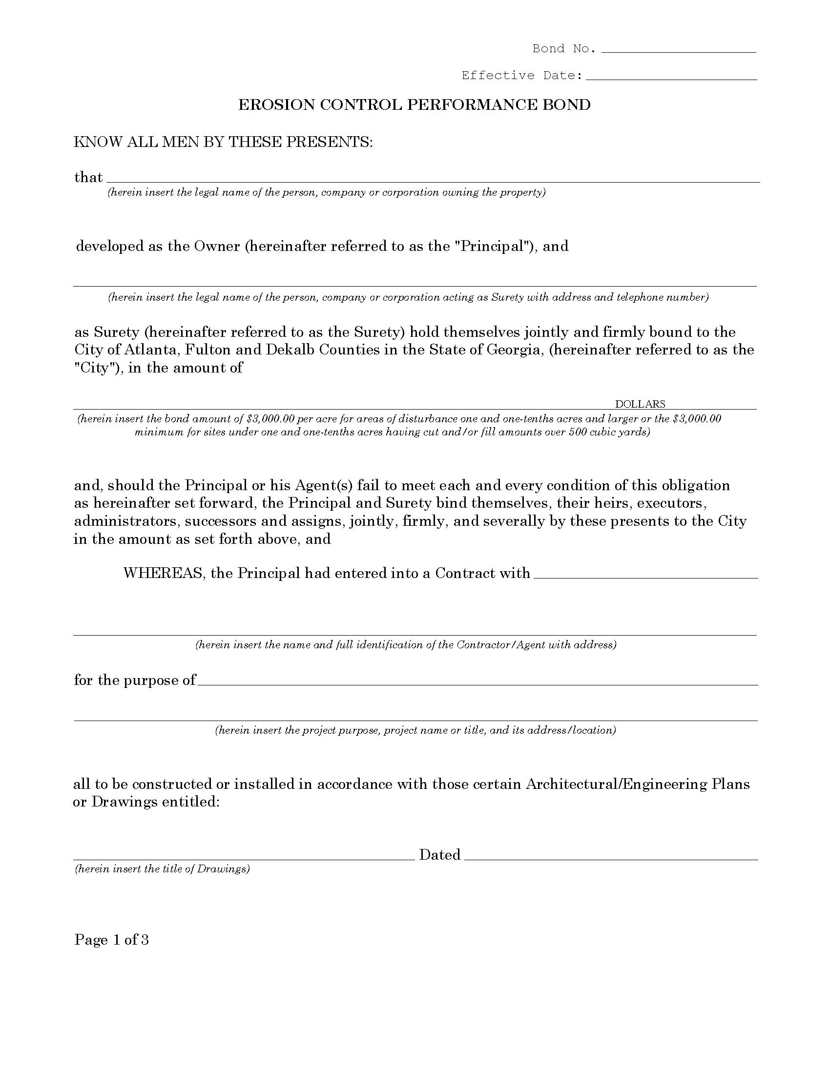 City of Atlanta, Fulton and DeKalb Counties Erosion Control Performance Bond