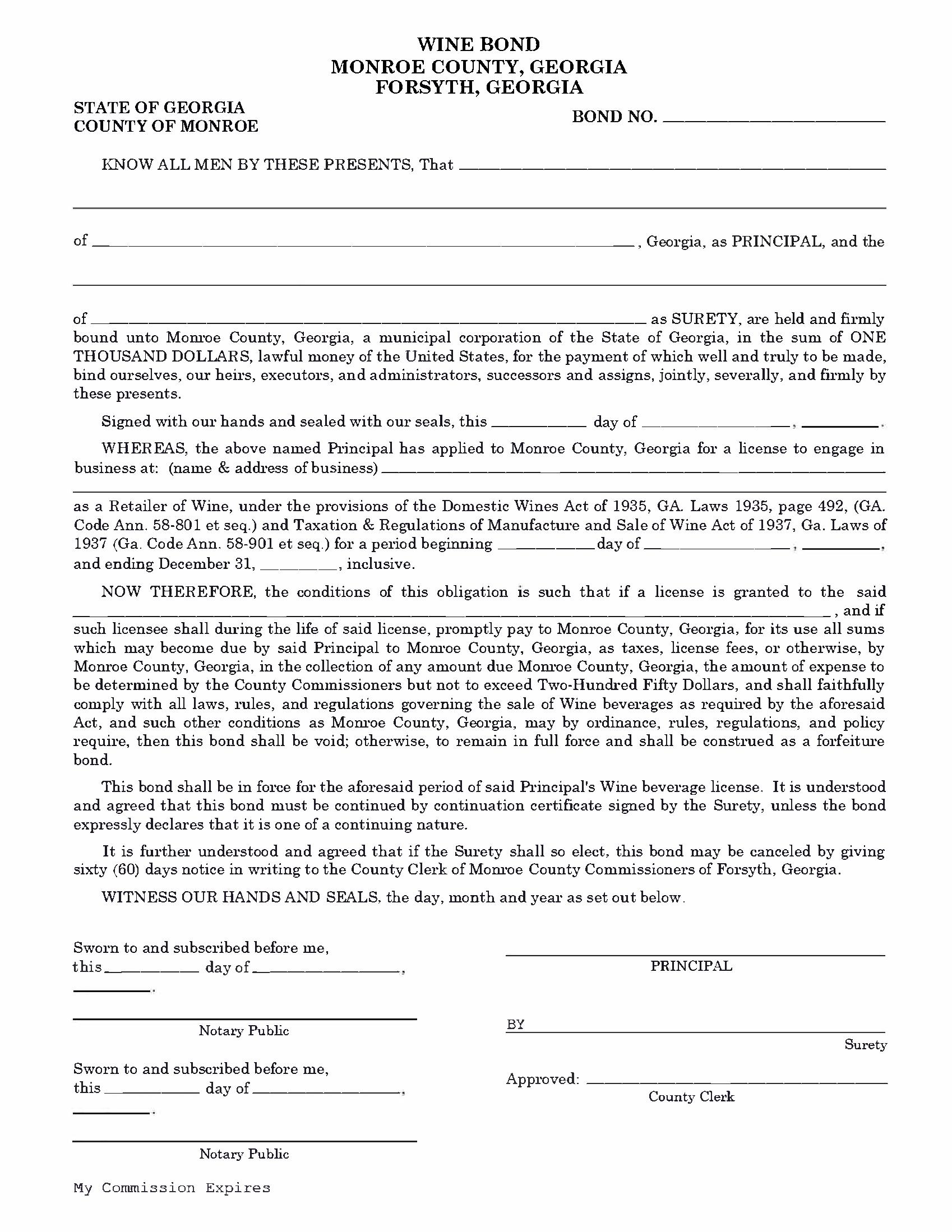 Monroe County, Georgia Retailer of Wine Bond