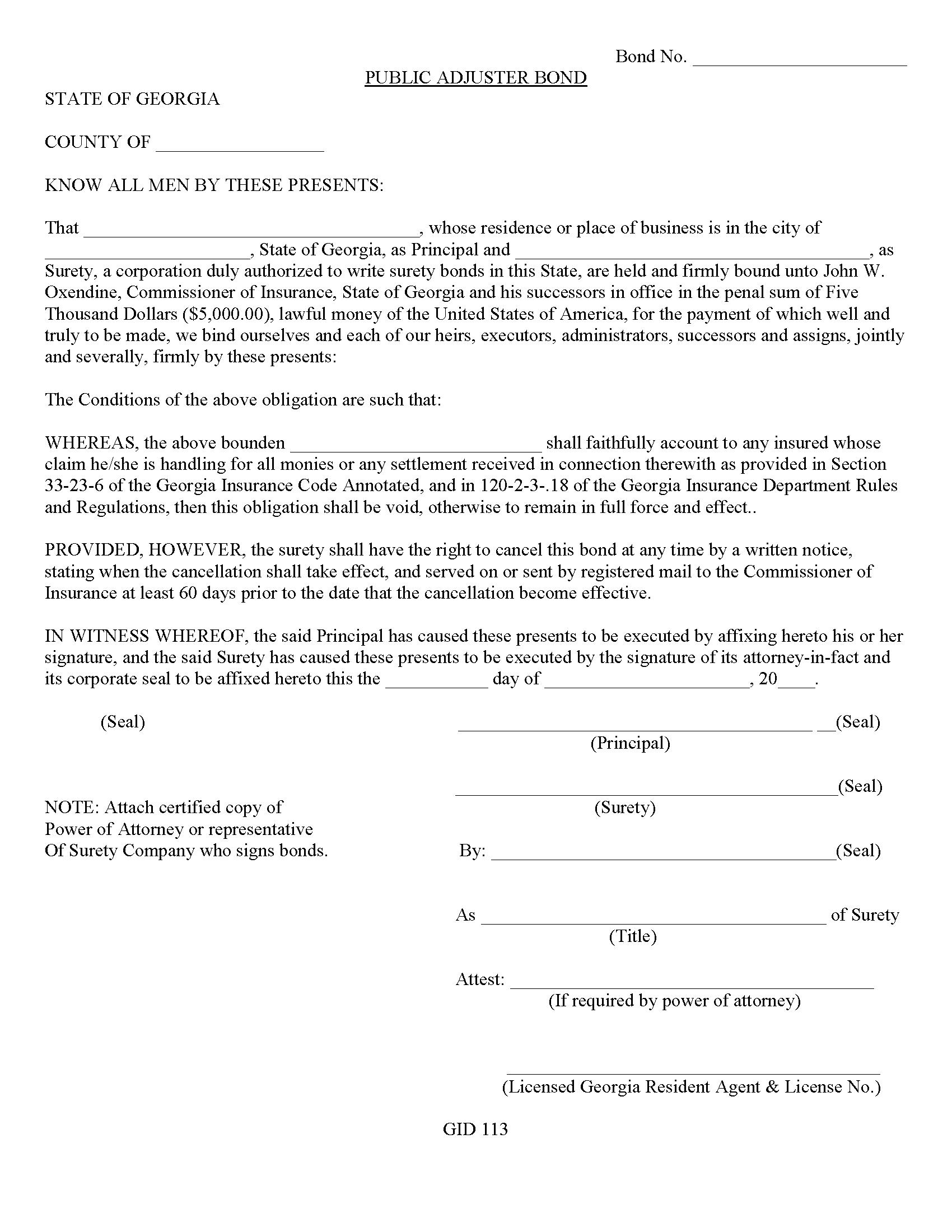 <p>The Georgia Public Adjuster Bond starts at $100 plus shipping costs and fees. Fill out the form to buy your bond instantly!</p>