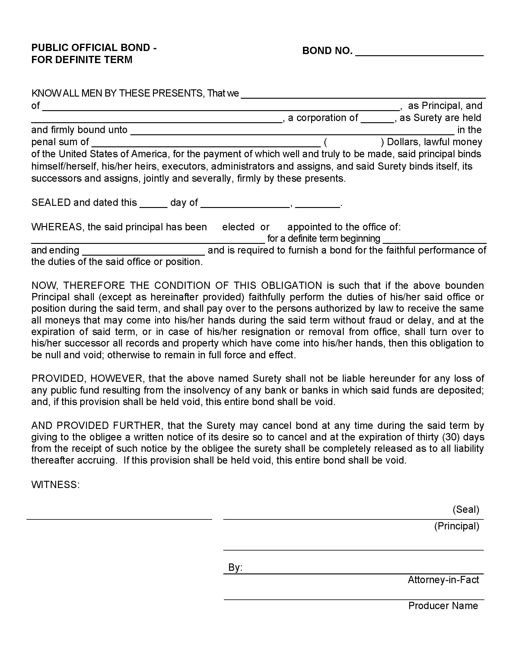 Fill out the form to buy your Public Official Position Other Than Treasurer or Tax Collector Bond instantly!