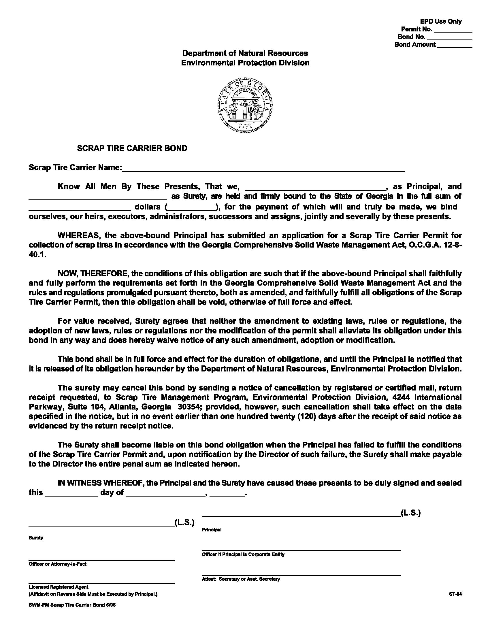 The Georgia Scrap Tire Carrier Bond starts at $100 plus shipping costs and fees. Fill out the form to buy your bond instantly!