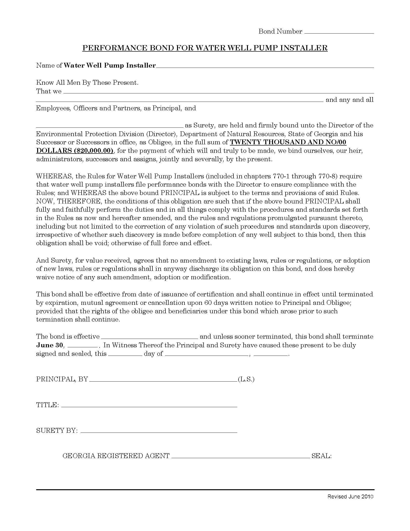 State of Georgia Water Well Pump Installers Bond