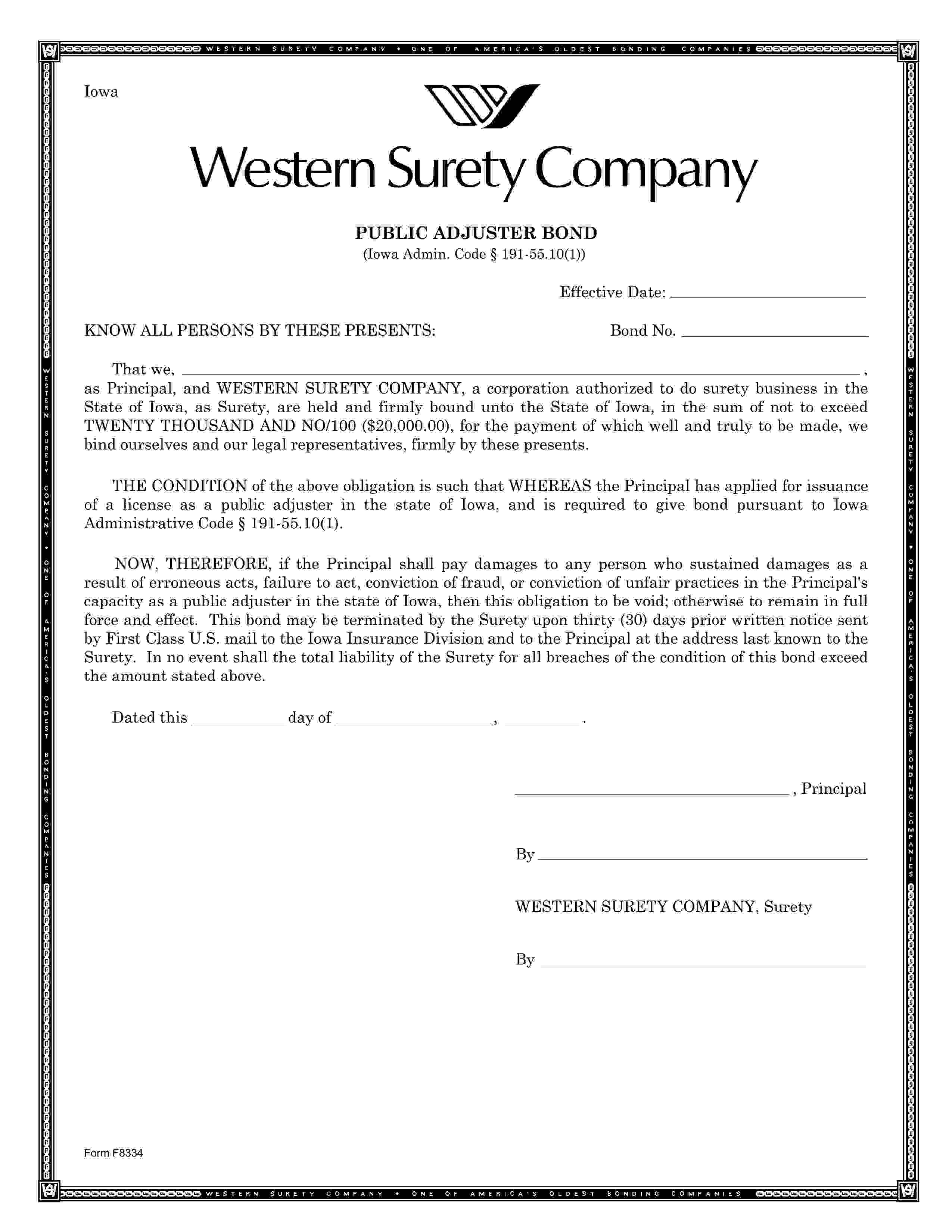 State of Iowa Public Adjuster Bond