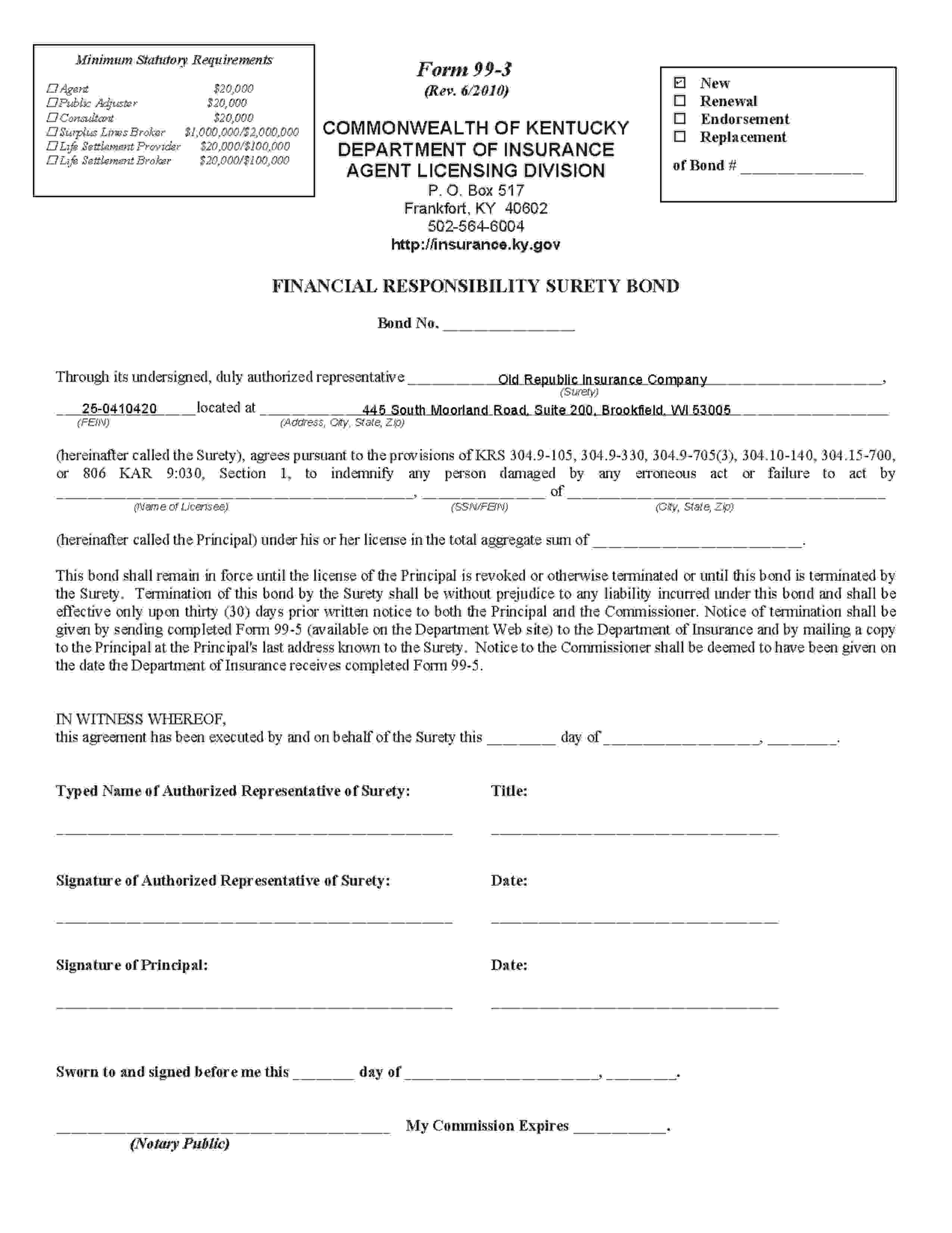 Financial Responsibility Bond