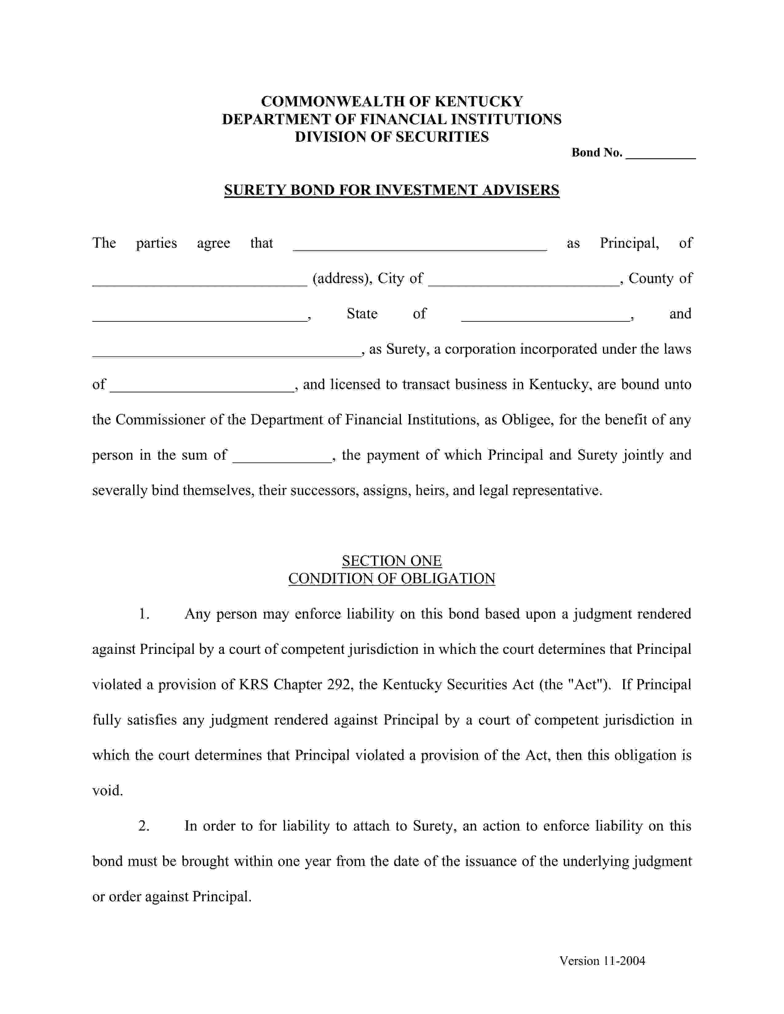Commonwealth of Kentucky Investment Adviser Bond