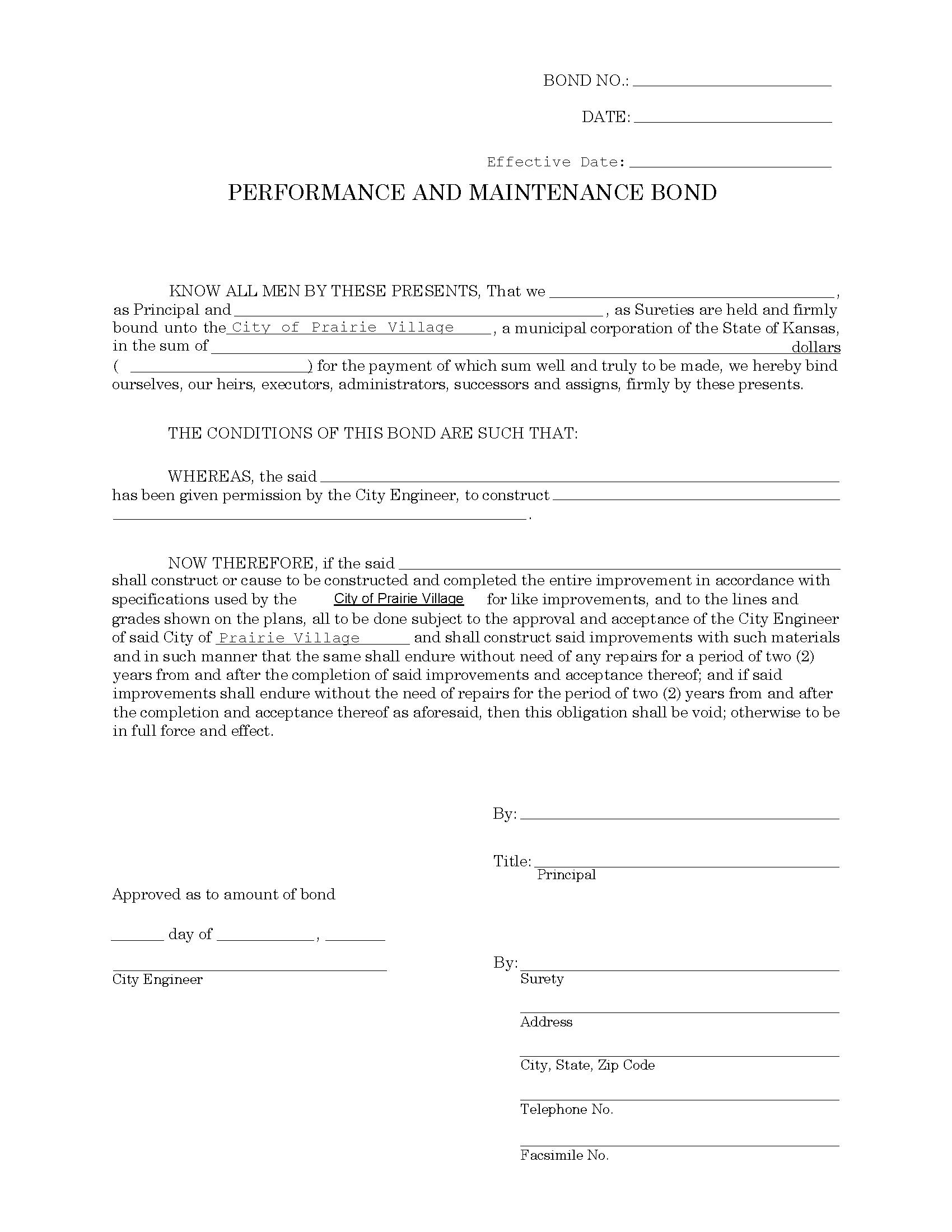 City of Prairie Village Performance and Maintenance Bond