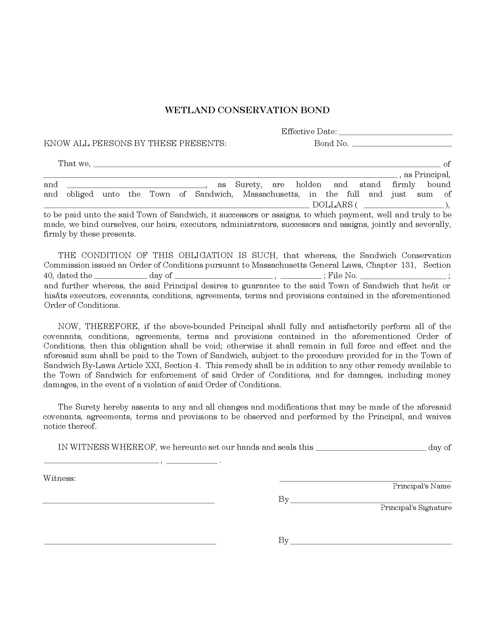 The Massachusetts Town of Sandwich Wetland Conservation Bond starts at $100 plus shipping costs and fees. Fill out the form to buy your bond instantly!