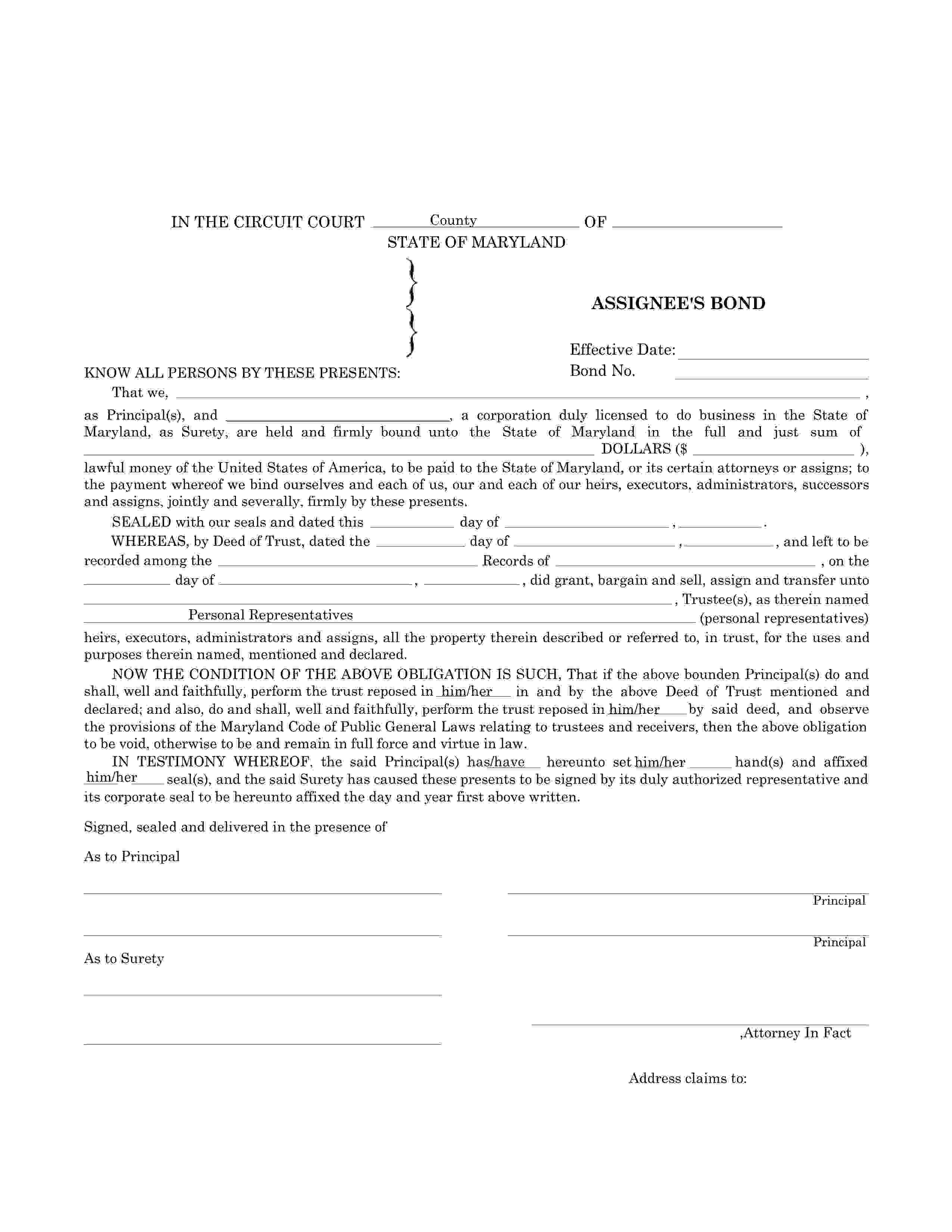 The Assignee Bond starts at $100 plus shipping costs and fees. Fill out the form to buy your bond instantly!