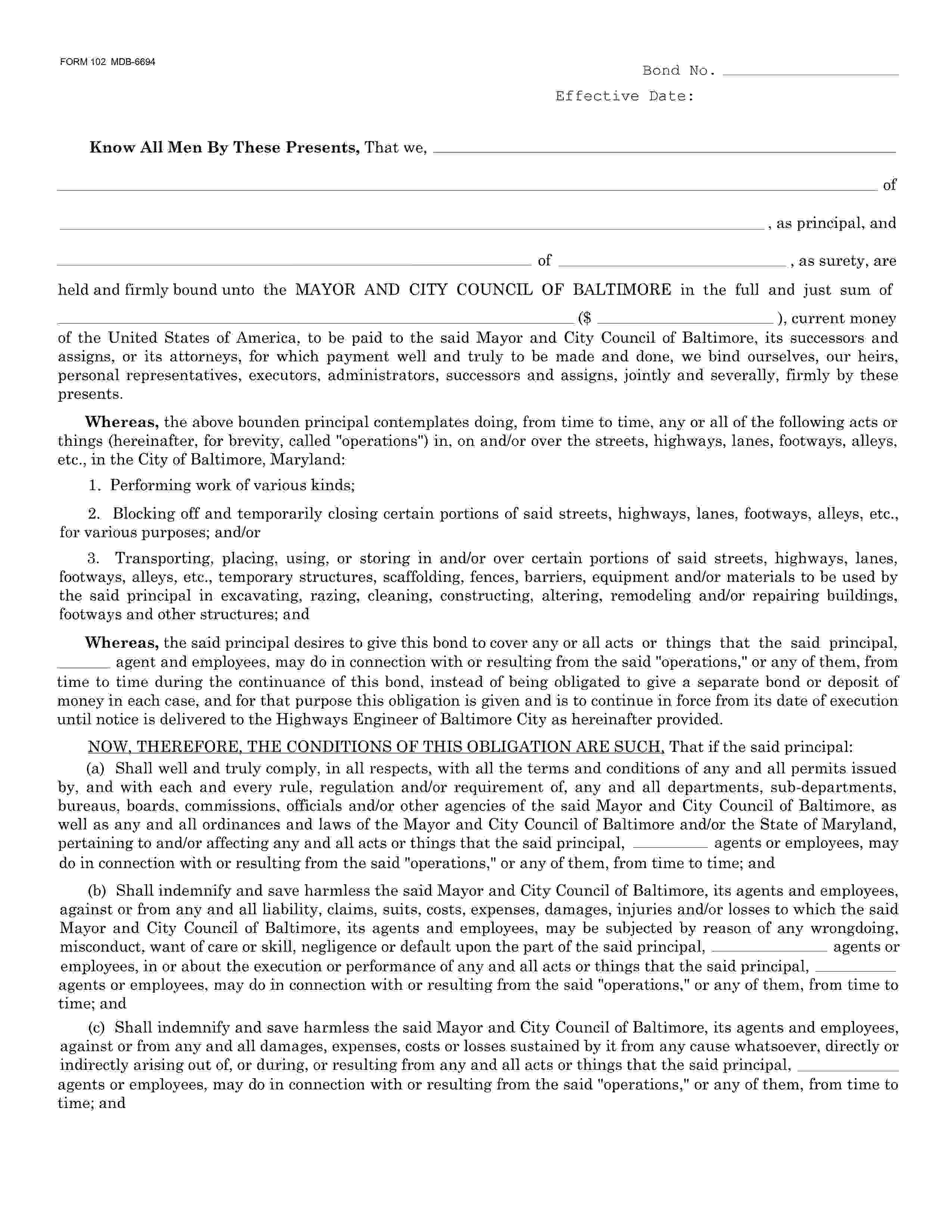City of Baltimore Street Permit Bond
