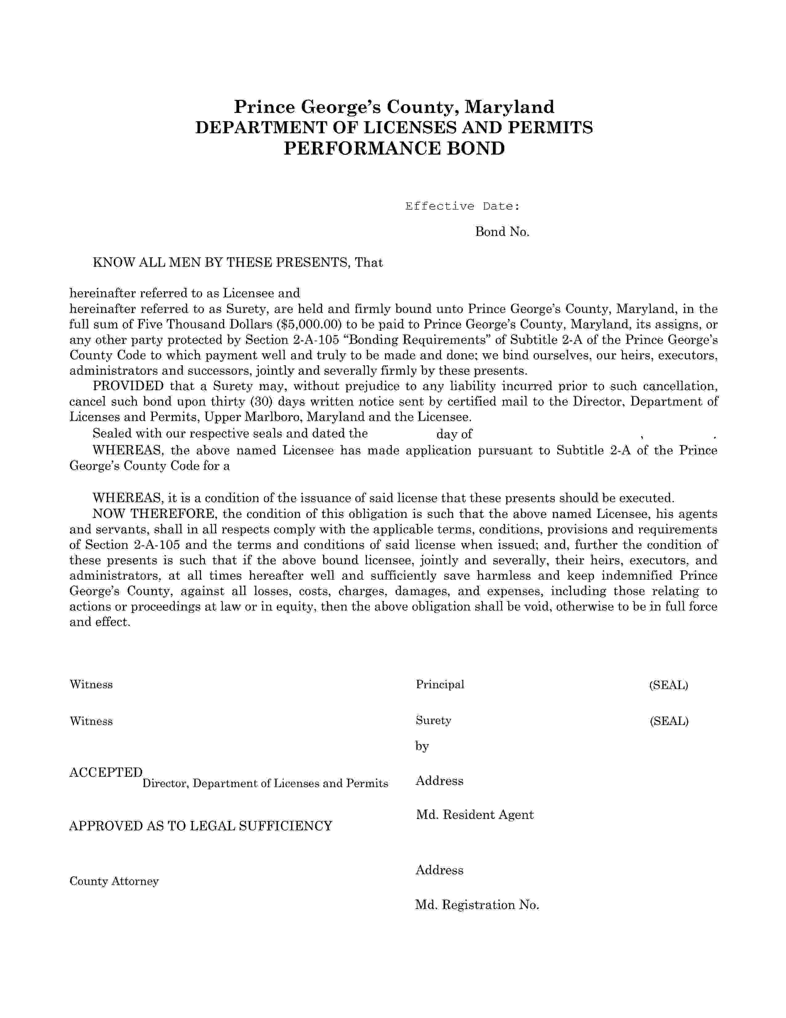 Prince George’s County Refrigeration, Heating and Air-Conditioning (HVAC) Contractor Bond