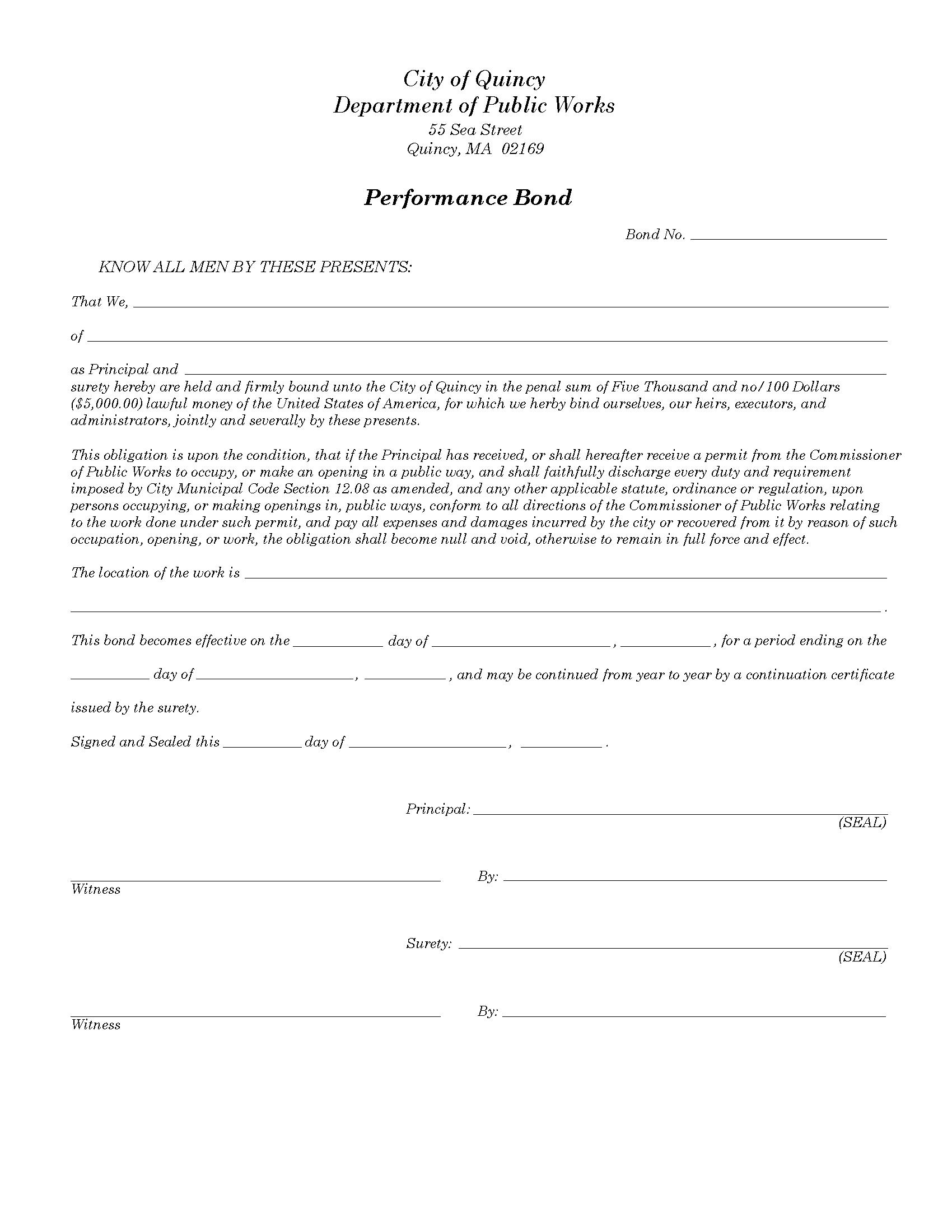 City of Quincy Street Opening Permit Bond