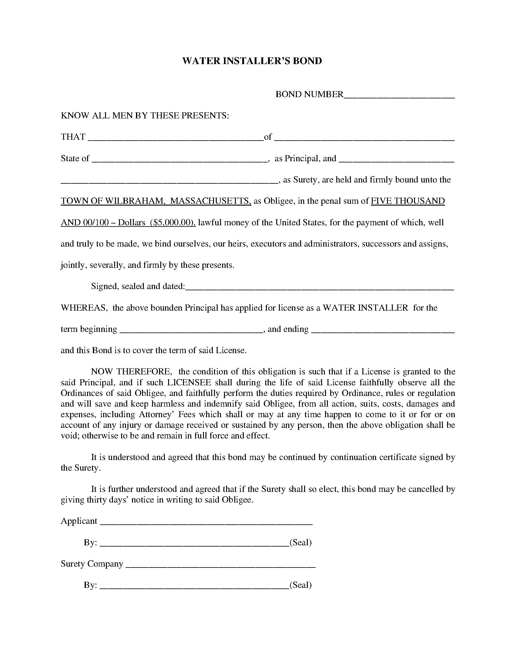 Wilbraham Water Installer Bond