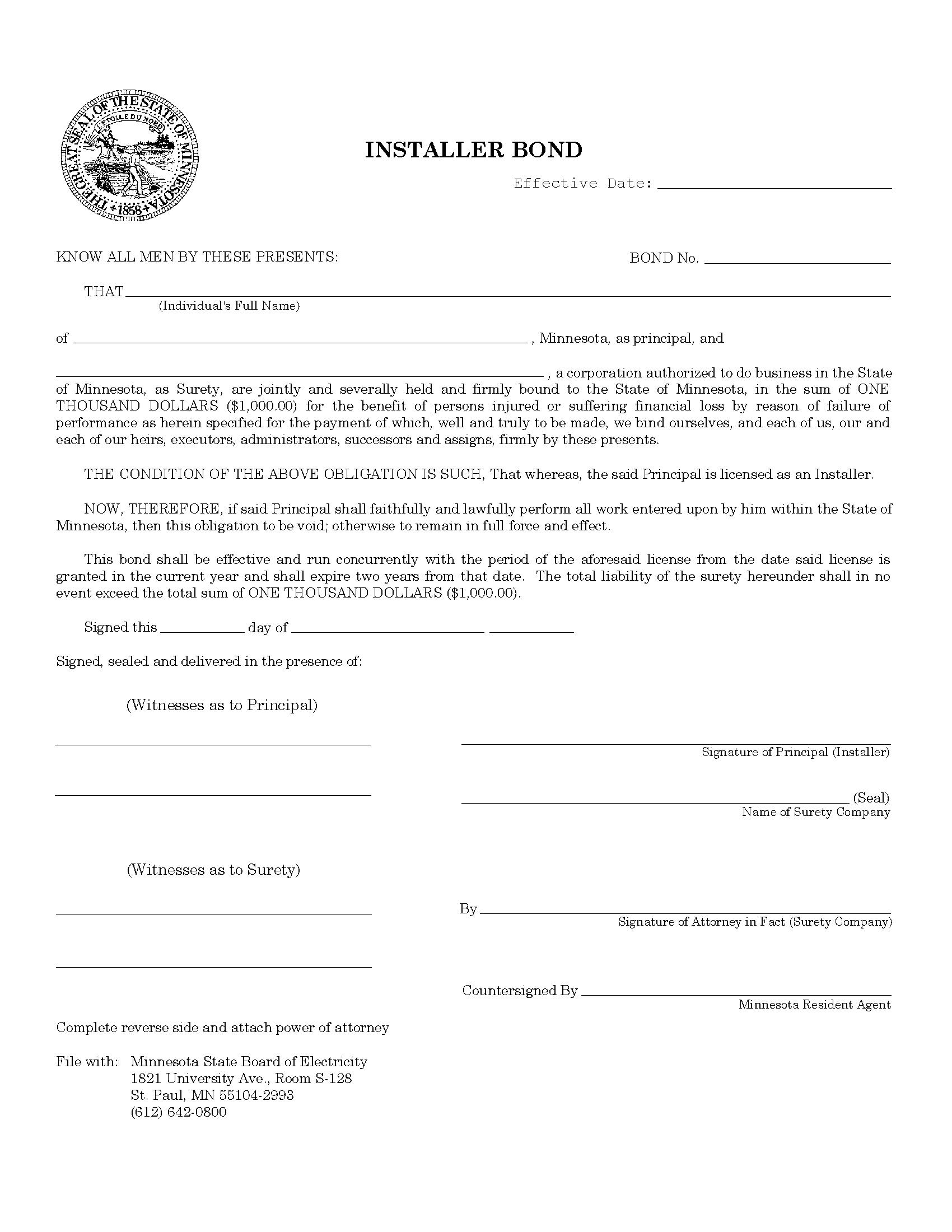 The Minnesota Electrical Installer Bond starts at $175 plus shipping costs and fees. Fill out the form to buy your bond instantly!