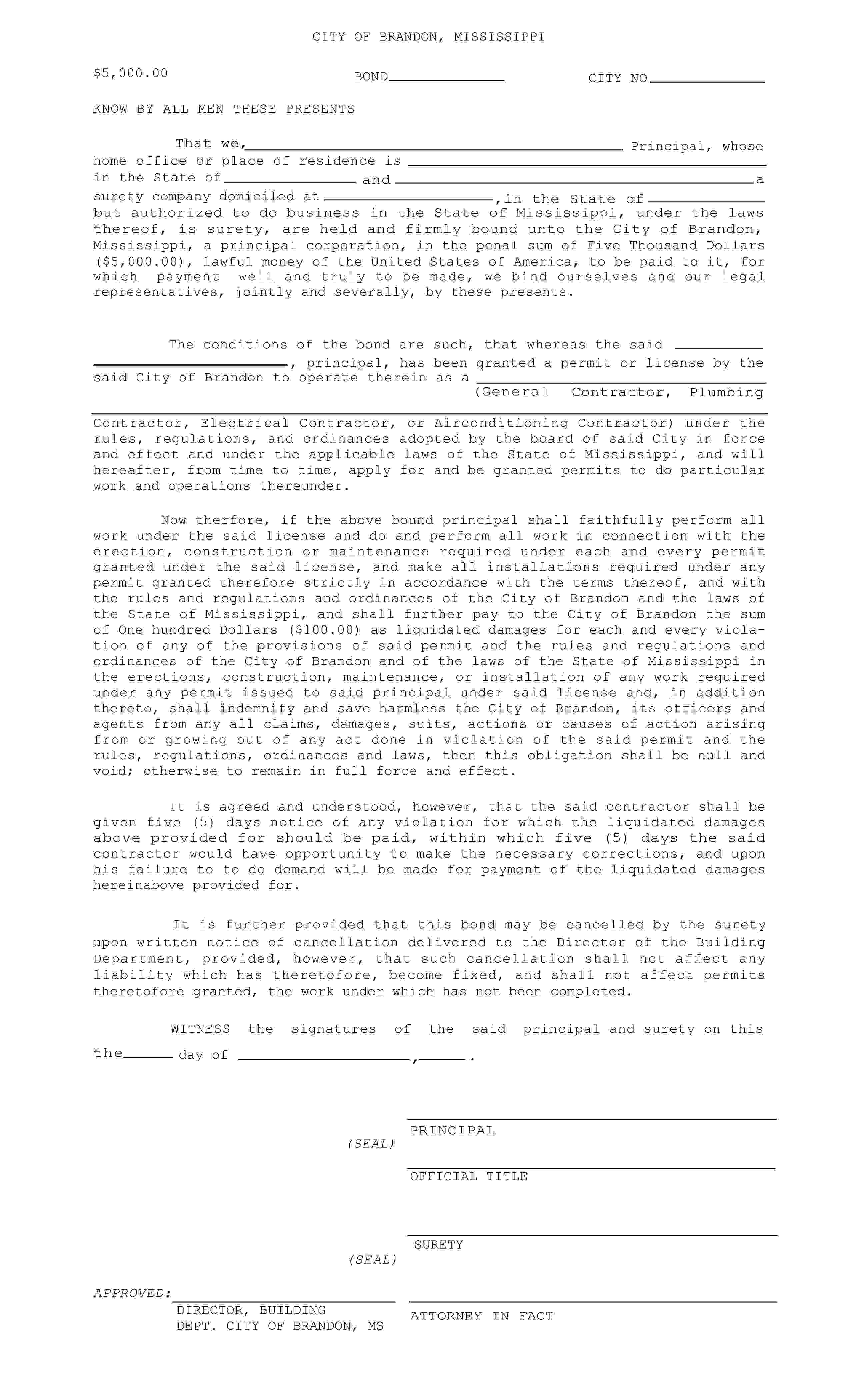 City of Chesapeake Erosion and Sediment Control Facilities Permit Bond
