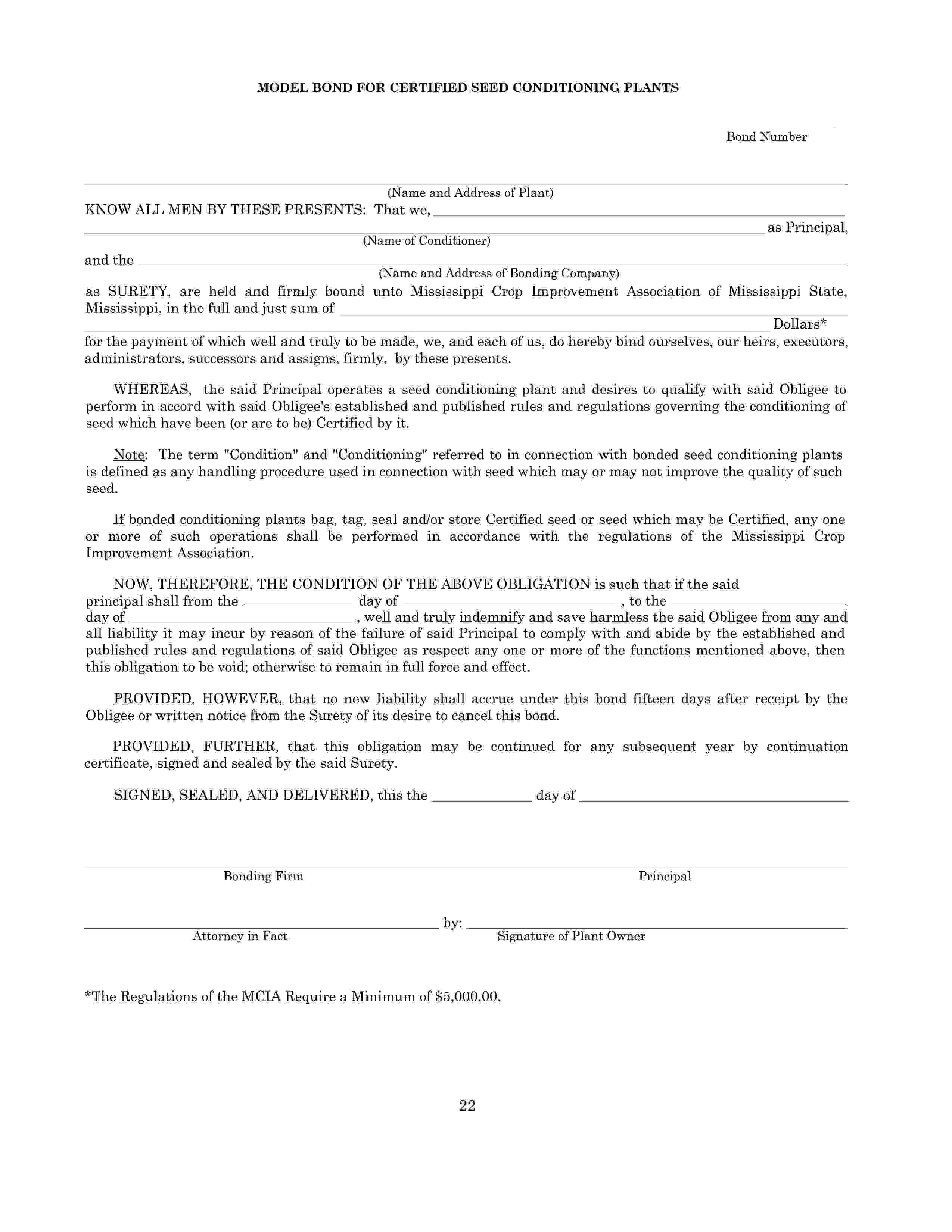 The Mississippi Certified Seed Conditioning Plant Bond starts at $100 plus shipping costs and fees. Fill out the form to buy your bond instantly!