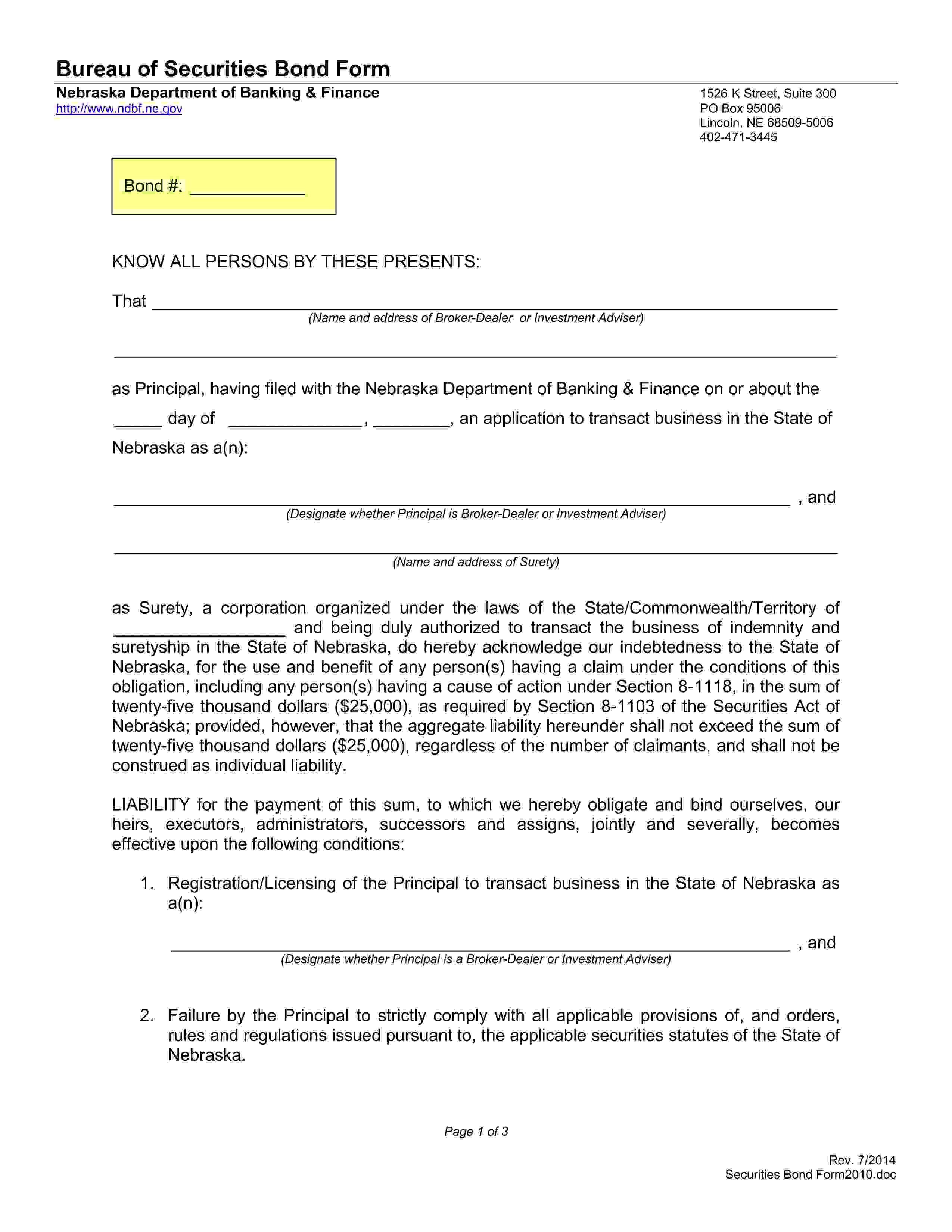 State of Nebraska Broker-Dealer or Investment Adviser Bond