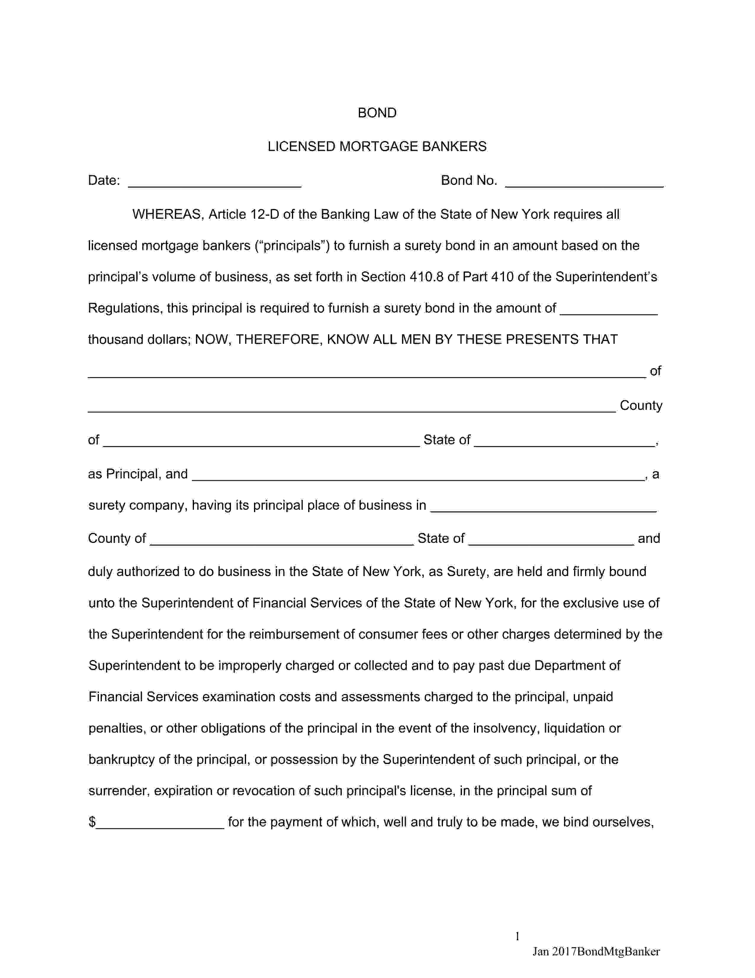 The New York Licensed Mortgage Bankers Bond starts at $500 plus shipping costs and fees. Fill out the form to buy your bond instantly!