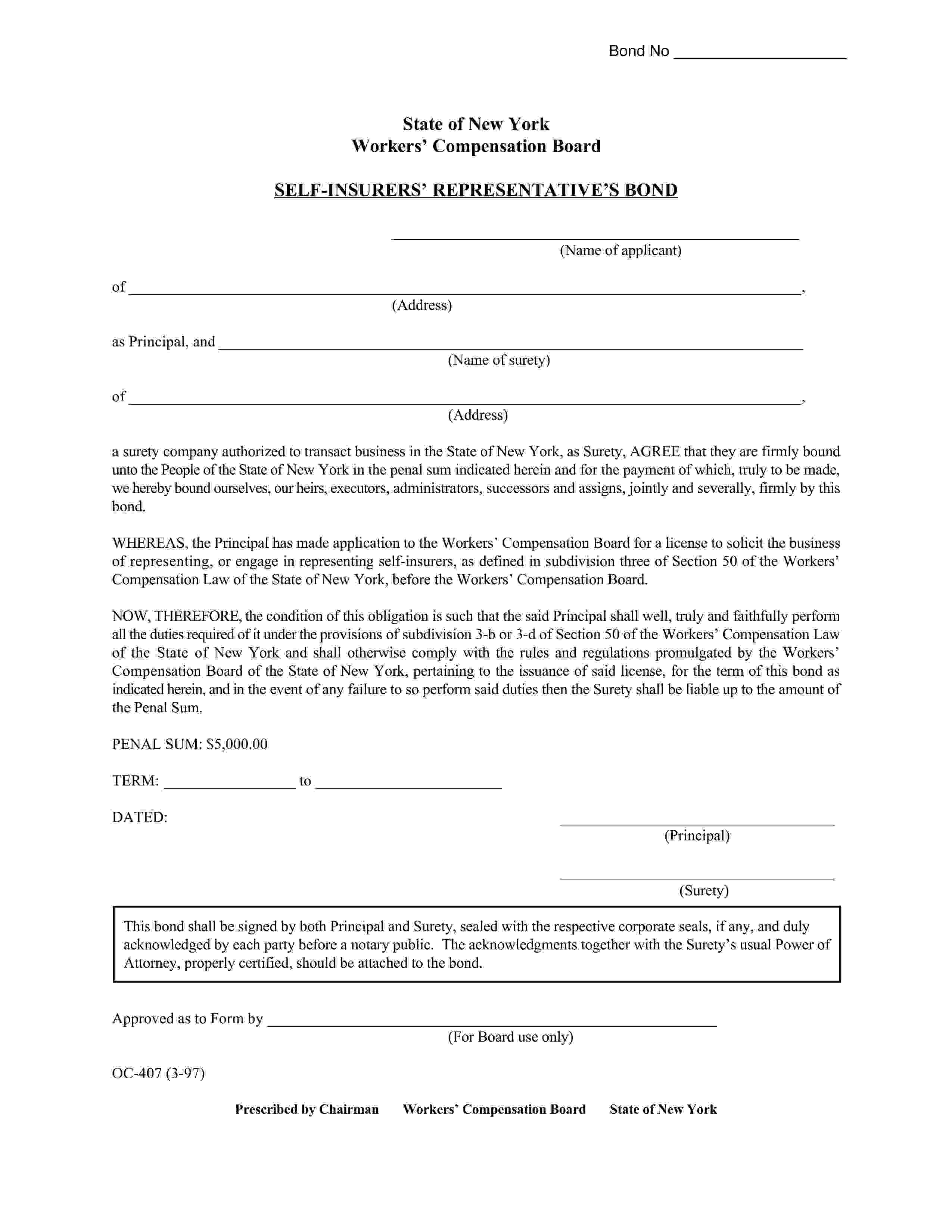 State of New York Self-Insurers' Representative Bond