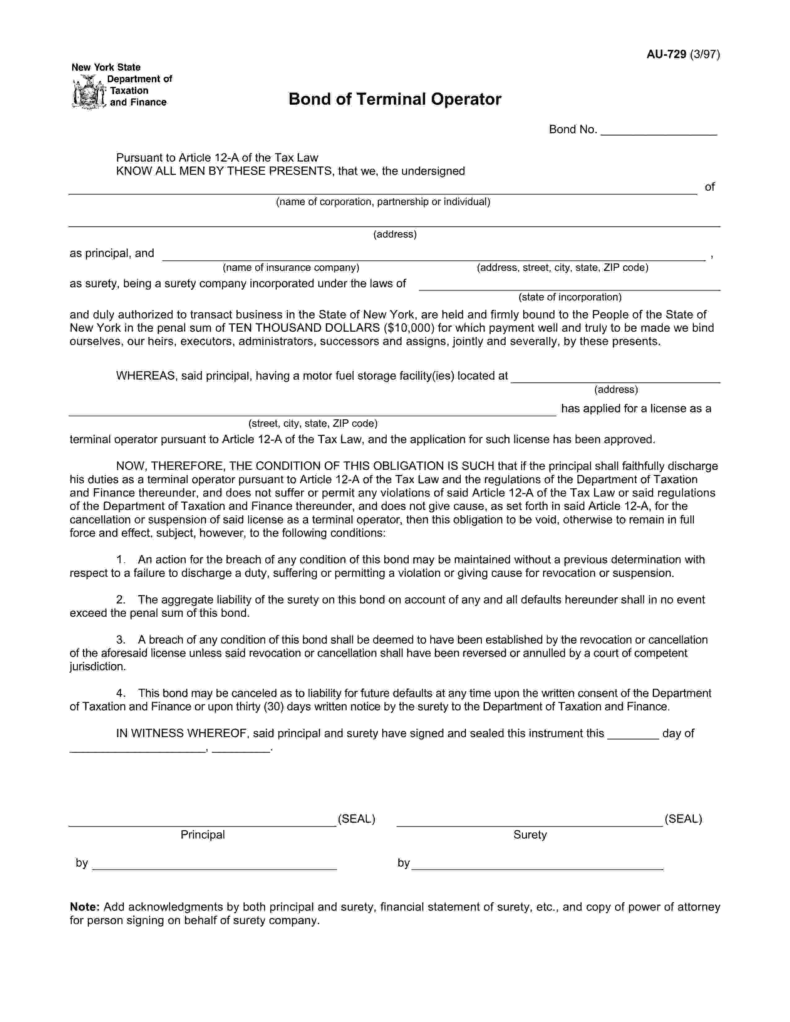 State of New York Motor Fuel Terminal Operator Bond
